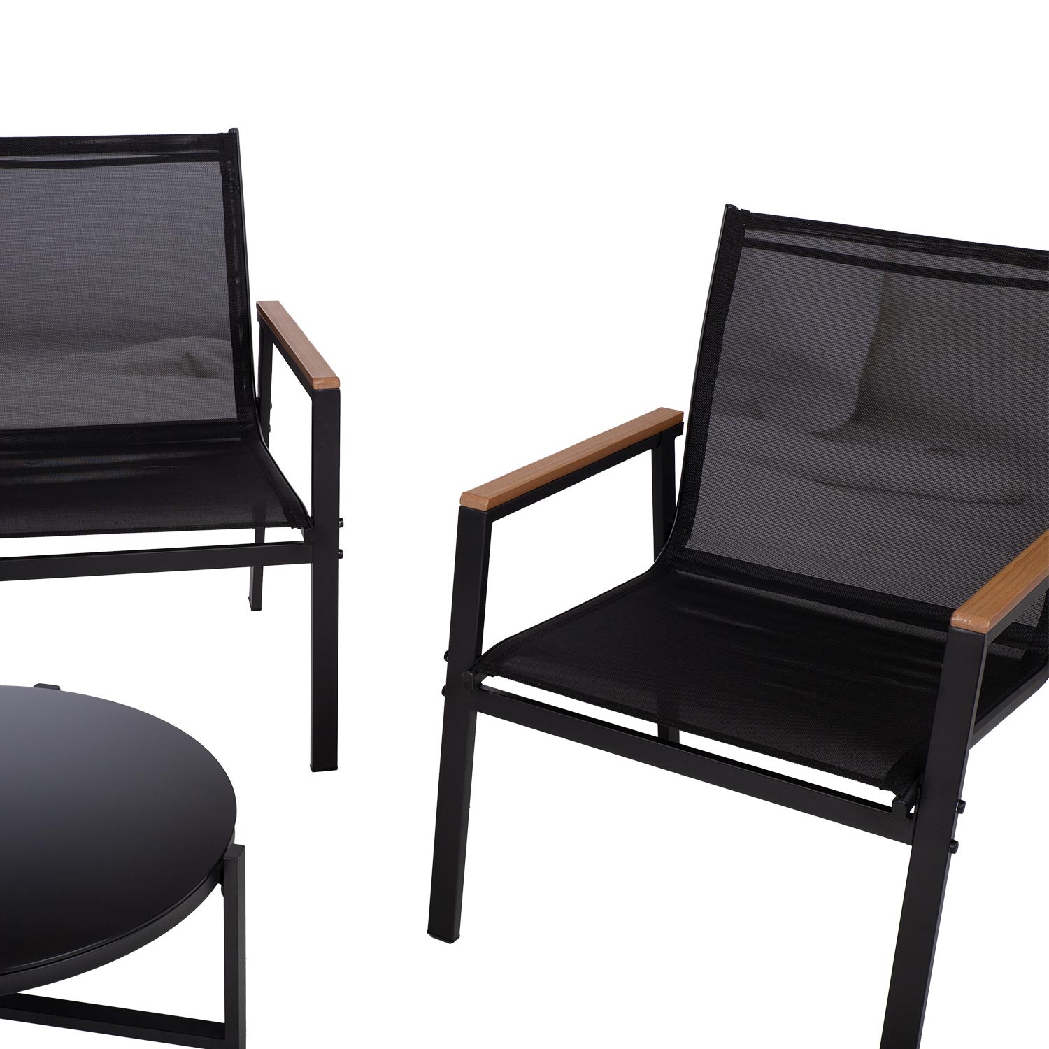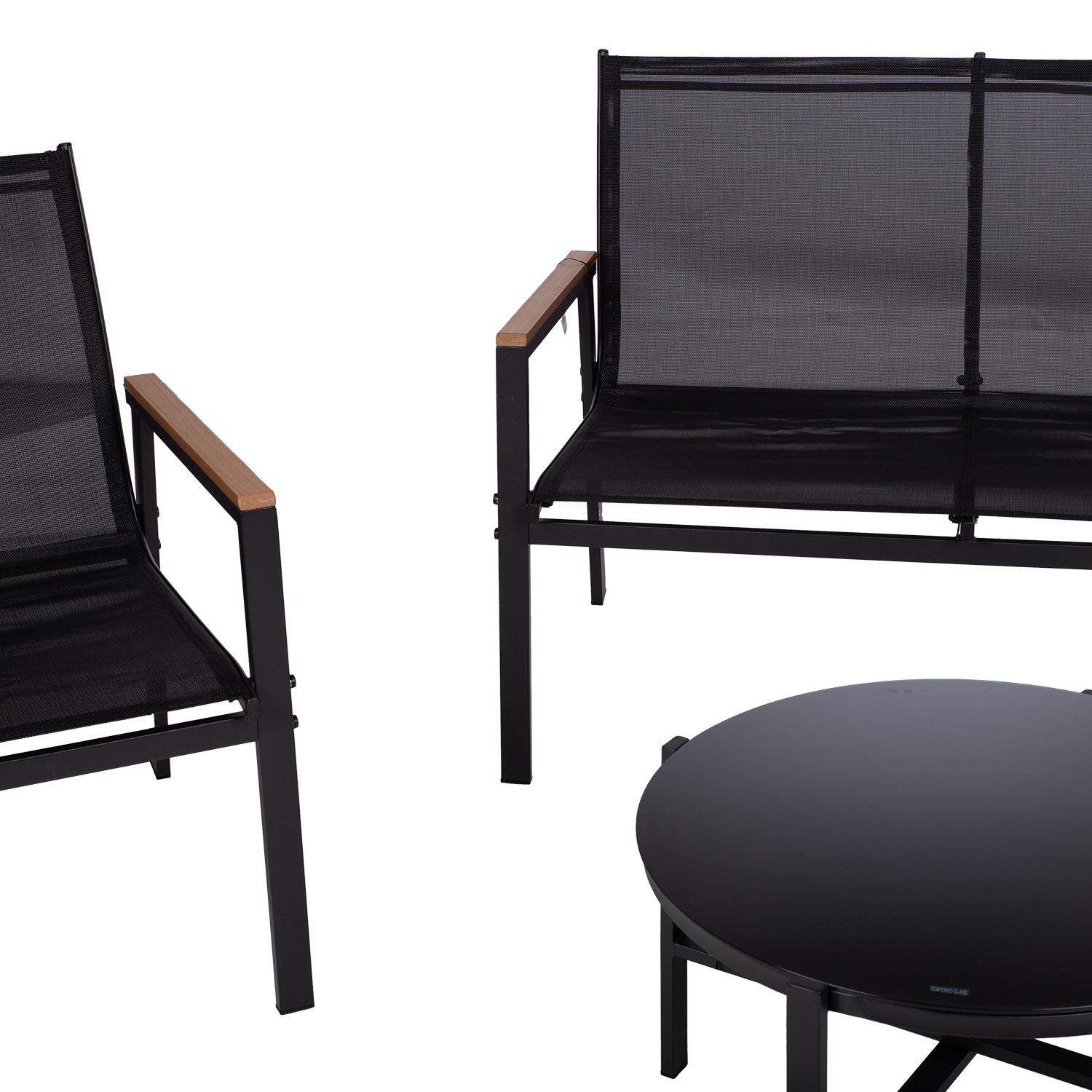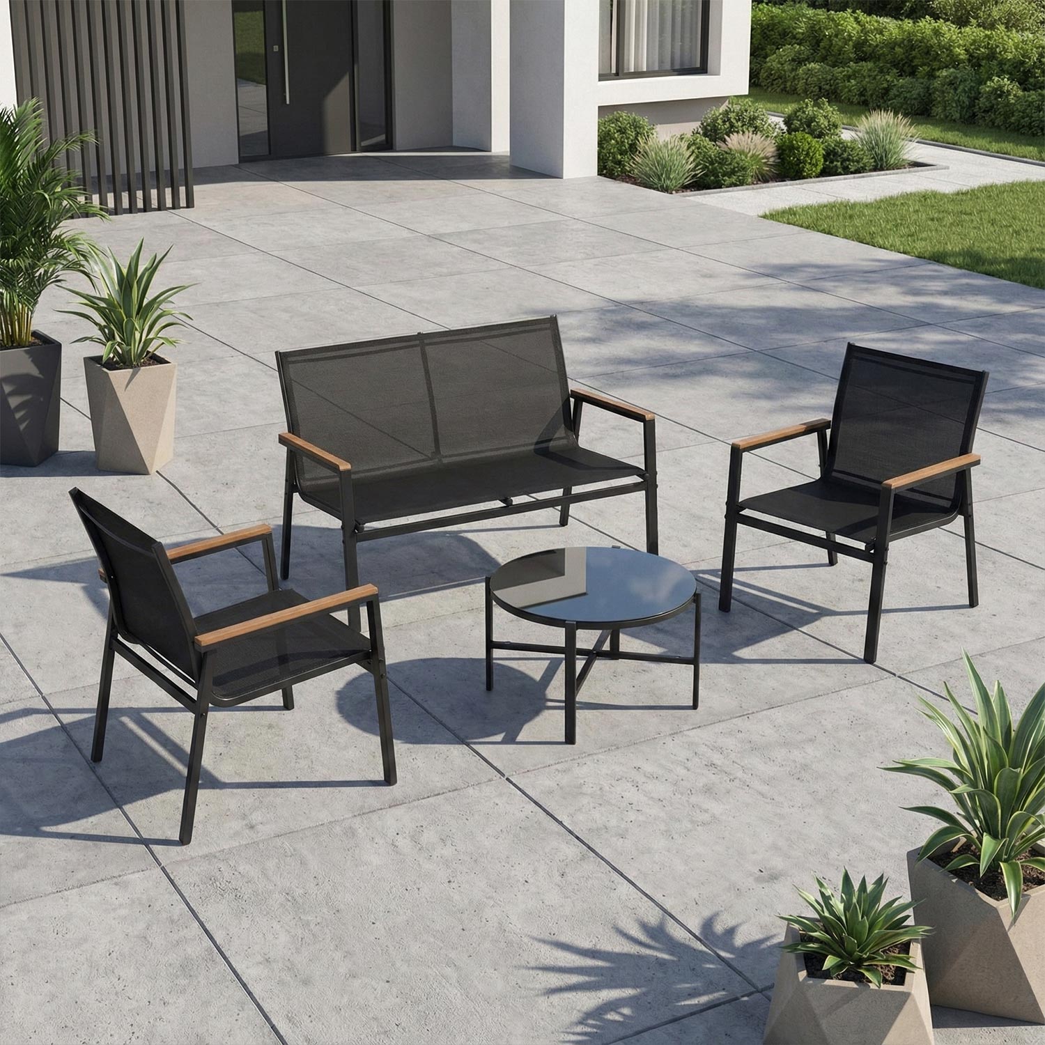 Sodo baldų komplektas CANAAN stalas, suolas ir 2 kėdės, juodos spalvos