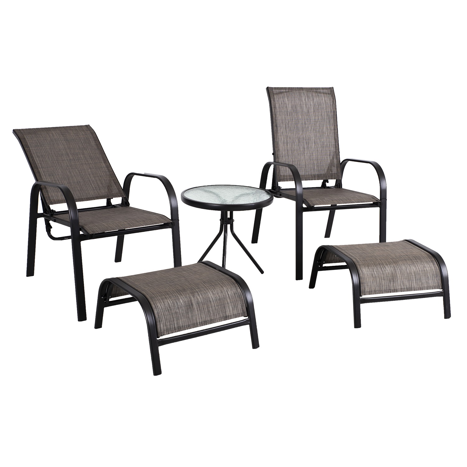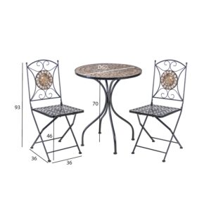 Sodo baldų komplektas DAKOTA stalas, 2 reguliuojamos kėdės ir 2 pakojos. Visų komplekto dalių rėmai pagaminti iš plieno ir nudažyti juoda milteline danga. Kėdės ir kėdės sėdynė bei atlošas, taip pat kojų padėklas aptraukti pilku tekstileno audiniu, kuris praleidžia orą, greitai džiūsta ir yra lengvai valdomas. Stalo matmenys D50xH46 cm, stalviršis: 5 mm skaidrus gofruotas stiklas. Kėdės matmenys 78×55,5xH98 cm, kojų pakojos 56x51xH30 cm. Gaminys atsparus besikeičiančioms oro sąlygoms ir labai lengvai prižiūrimas. PRIEŽIŪRA: pasibaigus vasaros sezonui rekomenduojame sodo baldus laikyti patalpoje. Pasibaigus vasaros mėnesiams, sodo baldus reikėtų laikyti namuose. Sandėliavimui naudokite sausą ir gerai vėdinamą patalpą.