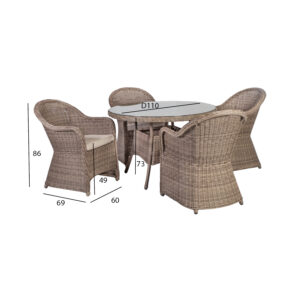 Sodo baldų komplektas EMERALD stalas, sofa ir 2 kėdės. Visų komplekto dalių rėmai pagaminti iš aliuminio ir aptraukti plastikine apyranke. Stalo matmenys 109x65xH61,5 cm. Stalo stalviršis. Sofos matmenys 120×70,5xH98,5 cm, kėdės matmenys 62×70,5xH98,5 cm. Kėdžių ir sofos atlošai reguliuojami. Pridedamos pagalvėlės. Pagalvių užvalkalai pagaminti iš lengvo poliesterio audinio. Sėdynių pagalvėlės 6 cm storio. Gaminys atsparus besikeičiančioms oro sąlygoms ir labai lengvai prižiūrimas. Tik pagalvėles reikia apsaugoti nuo atmosferos poveikio. Norėdami prailginti lauko baldų tarnavimo laiką, rekomenduojame naudoti lauko užvalkalus. PRIEŽIŪRA: pasibaigus vasaros sezonui, rekomenduojame sodo baldus laikyti patalpoje. Jei plaktuko sezonui, rekomenduojame palikti baldus sode žiemos mėnesiais. Sandėliavimui naudokite sausą ir gerai vėdinamą patalpą.