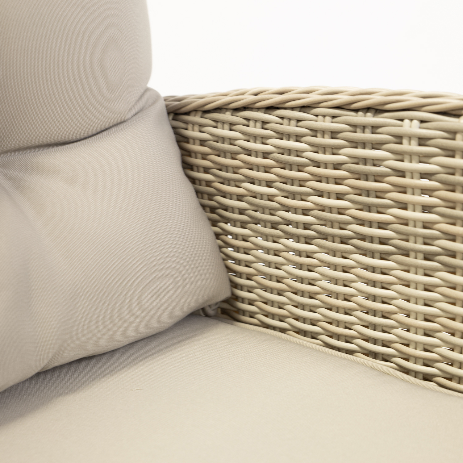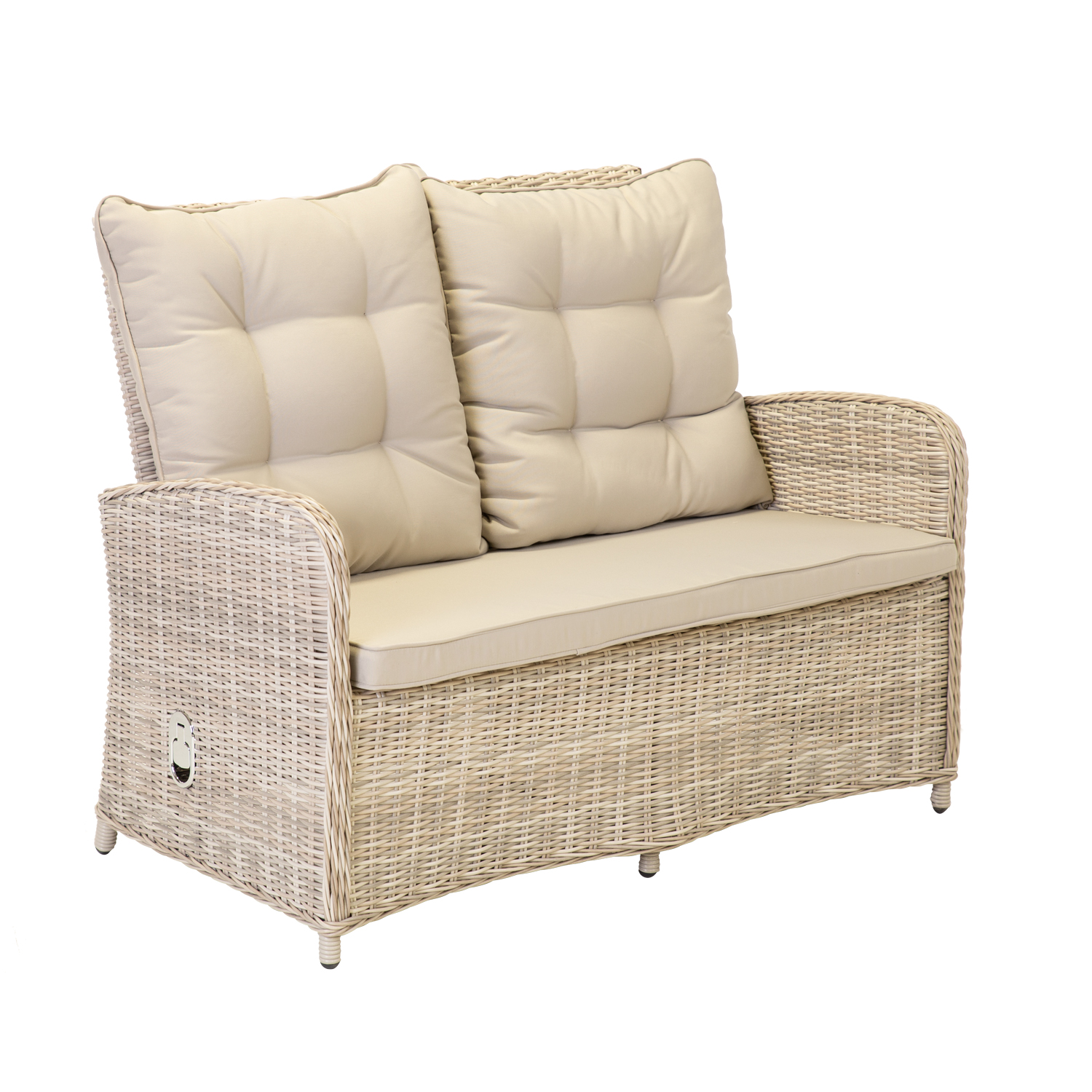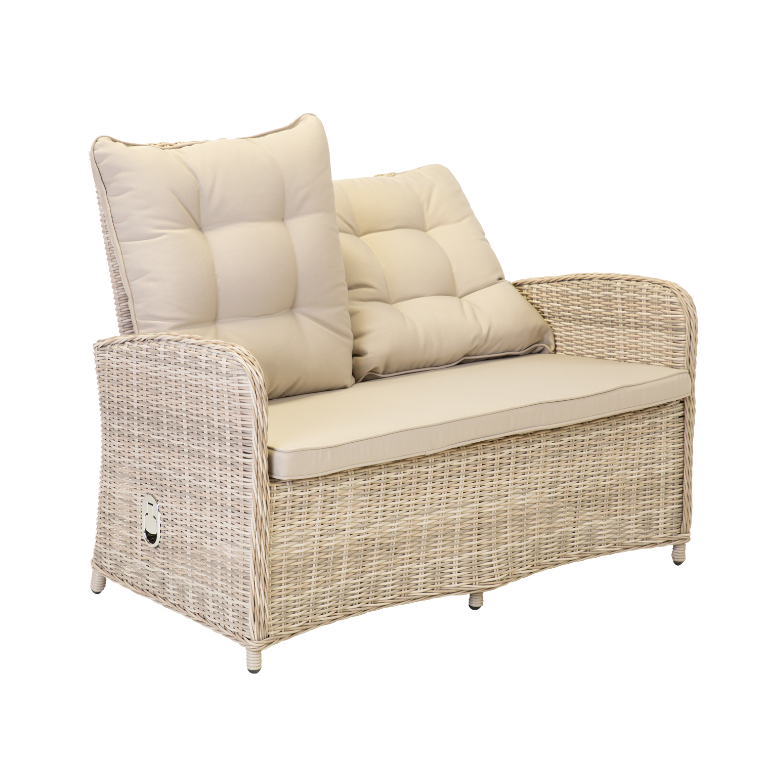 Sodo baldų komplektas EMERALD stalas, sofa ir 2 kėdės. Visų komplekto dalių rėmai pagaminti iš aliuminio ir aptraukti plastikine apyranke. Stalo matmenys 109x65xH61,5 cm. Stalo stalviršis. Sofos matmenys 120×70,5xH98,5 cm, kėdės matmenys 62×70,5xH98,5 cm. Kėdžių ir sofos atlošai reguliuojami. Pridedamos pagalvėlės. Pagalvių užvalkalai pagaminti iš lengvo poliesterio audinio. Sėdynių pagalvėlės 6 cm storio. Gaminys atsparus besikeičiančioms oro sąlygoms ir labai lengvai prižiūrimas. Tik pagalvėles reikia apsaugoti nuo atmosferos poveikio. Norėdami prailginti lauko baldų tarnavimo laiką, rekomenduojame naudoti lauko užvalkalus. PRIEŽIŪRA: pasibaigus vasaros sezonui, rekomenduojame sodo baldus laikyti patalpoje. Jei plaktuko sezonui, rekomenduojame palikti baldus sode žiemos mėnesiais. Sandėliavimui naudokite sausą ir gerai vėdinamą patalpą.