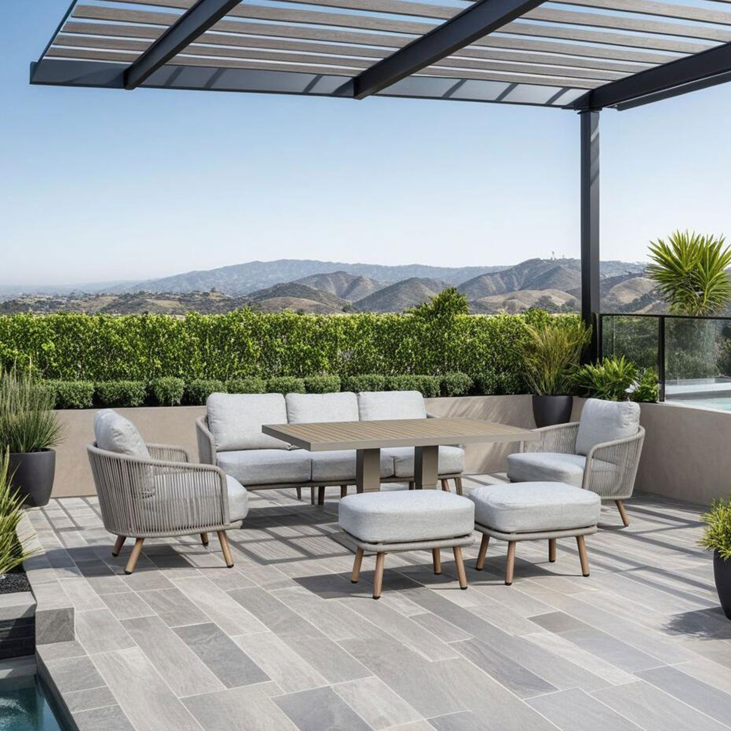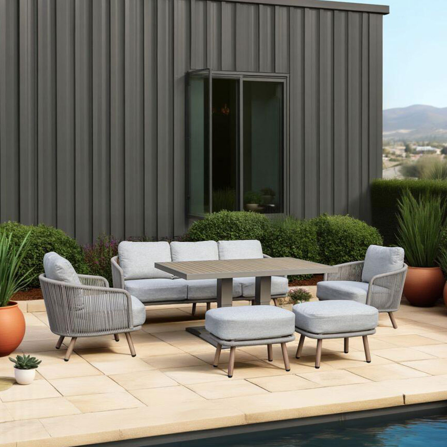 Sodo baldų komplektas MALISE 6 dalių, smėlio spalvos.
