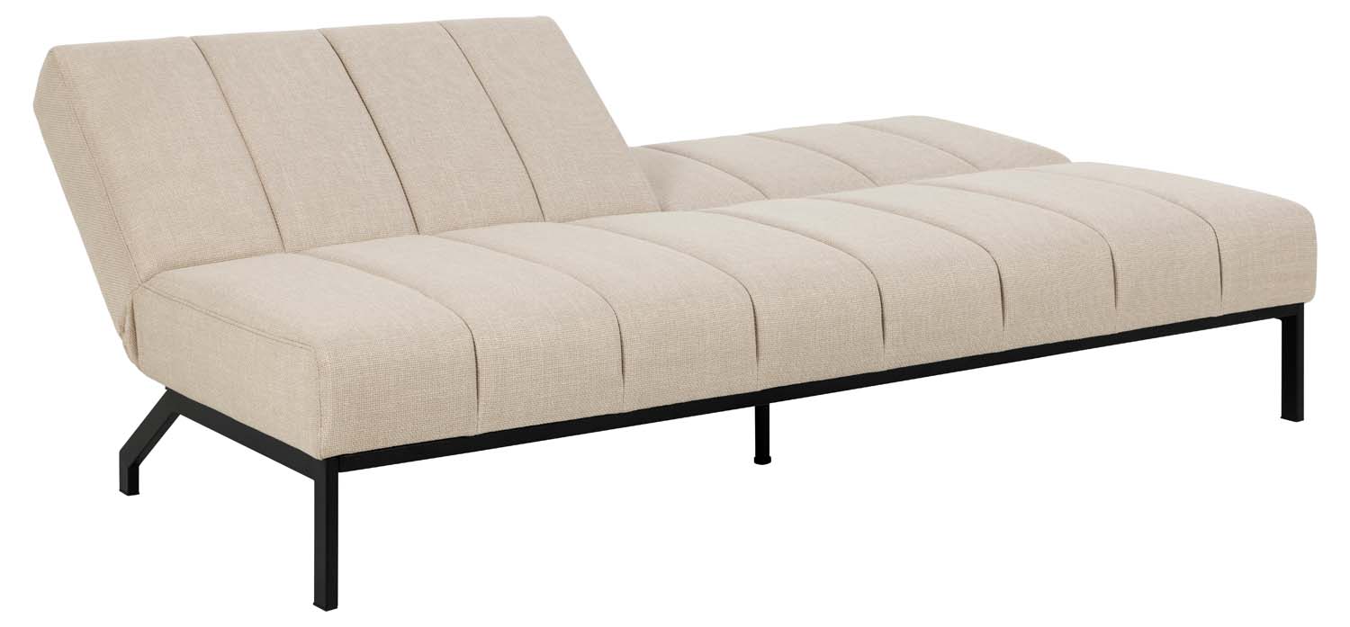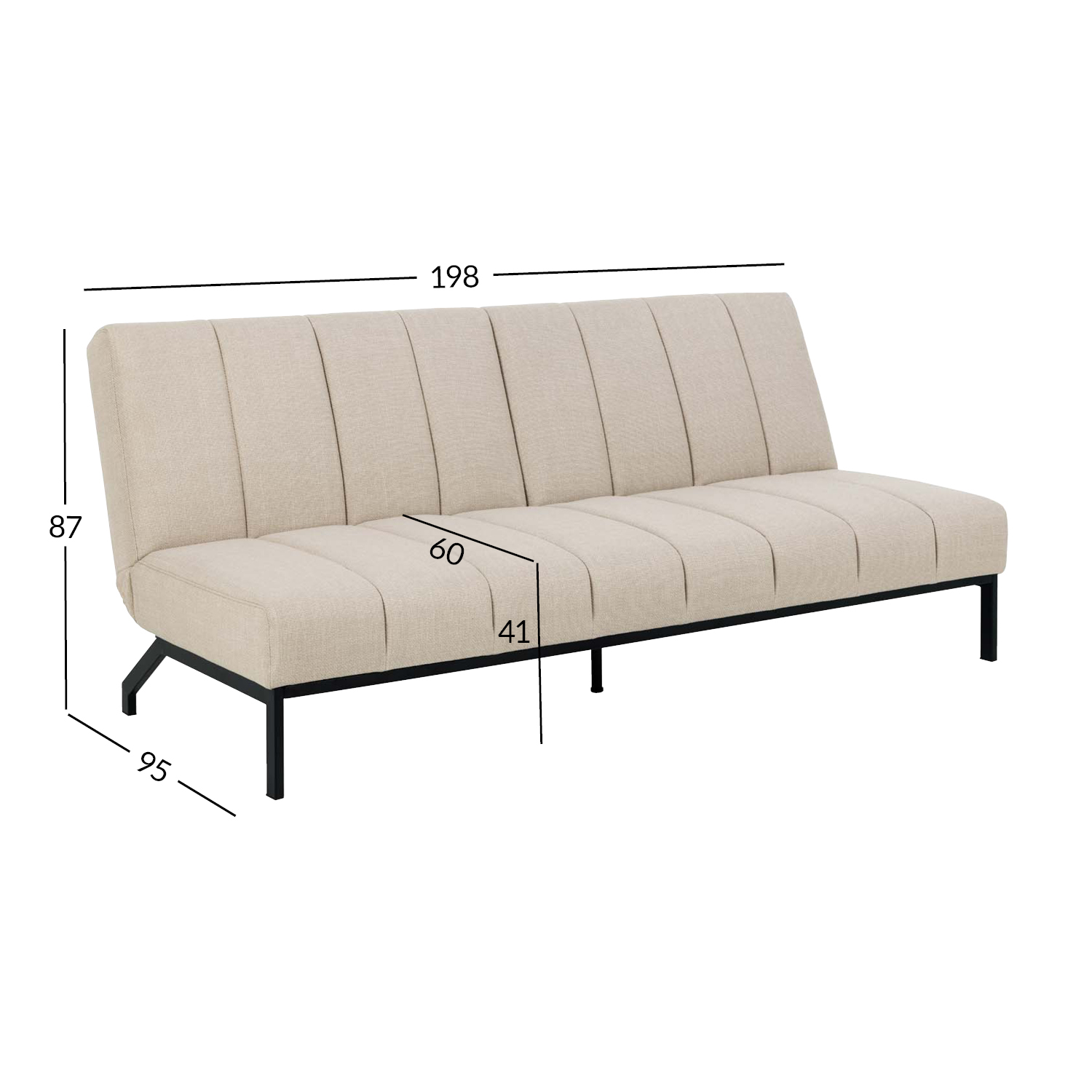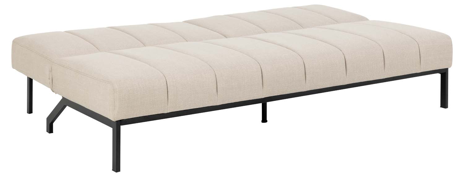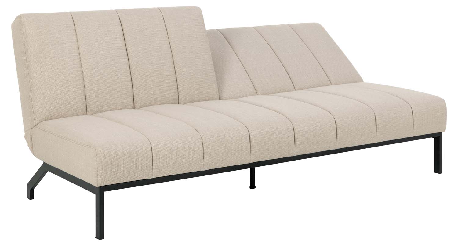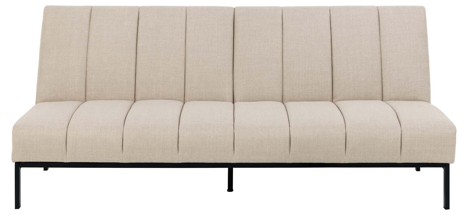 Elegantiška sofa lova – praktiškas sprendimas. Sofa aptraukta smėlio spalvos audiniu su dvispalviu efektu ir dekoruota vertikaliomis siūlėmis. Prireikus sofą paprasta sistema lengvai paverčia lova. Matmenys 198x95xH87 cm. PRIEŽIŪRA. Reikia atsargiai šalinti dėmes. Pirmiausia išbandykite dėmių šalinimo priemones mažiau matomoje vietoje. Niekada nenaudokite tirpiklių. Nestatykite baldų tiesioginiuose saulės spinduliuose. Pagrindas: kasdieniam valymui naudokite sausai muiluotu vandeniu išgręžtą šluostę. Paviršių nušluostykite sausai, kad nerūdytų. Netrinkite paviršiaus kietais daiktais.
