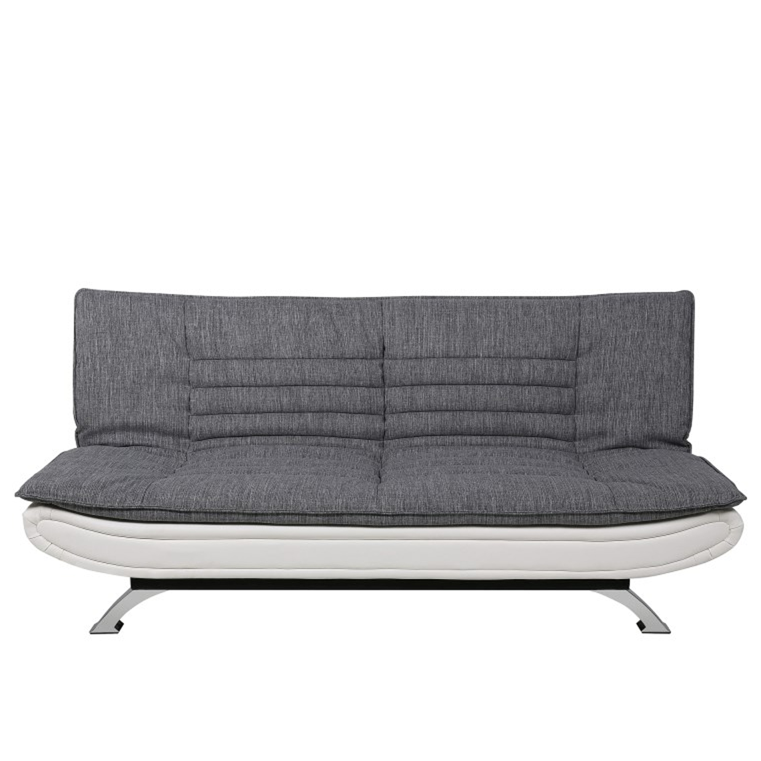 Sofa lova FAITH pilka/balta. Užvalkalo medžiaga – audinys ir oda. Kojos pagamintos iš metalo, chromo spalva. Išskleistos sofos-lovos matmenys 196×123 cm. Gaminio matmenys 196x98xH91 cm.