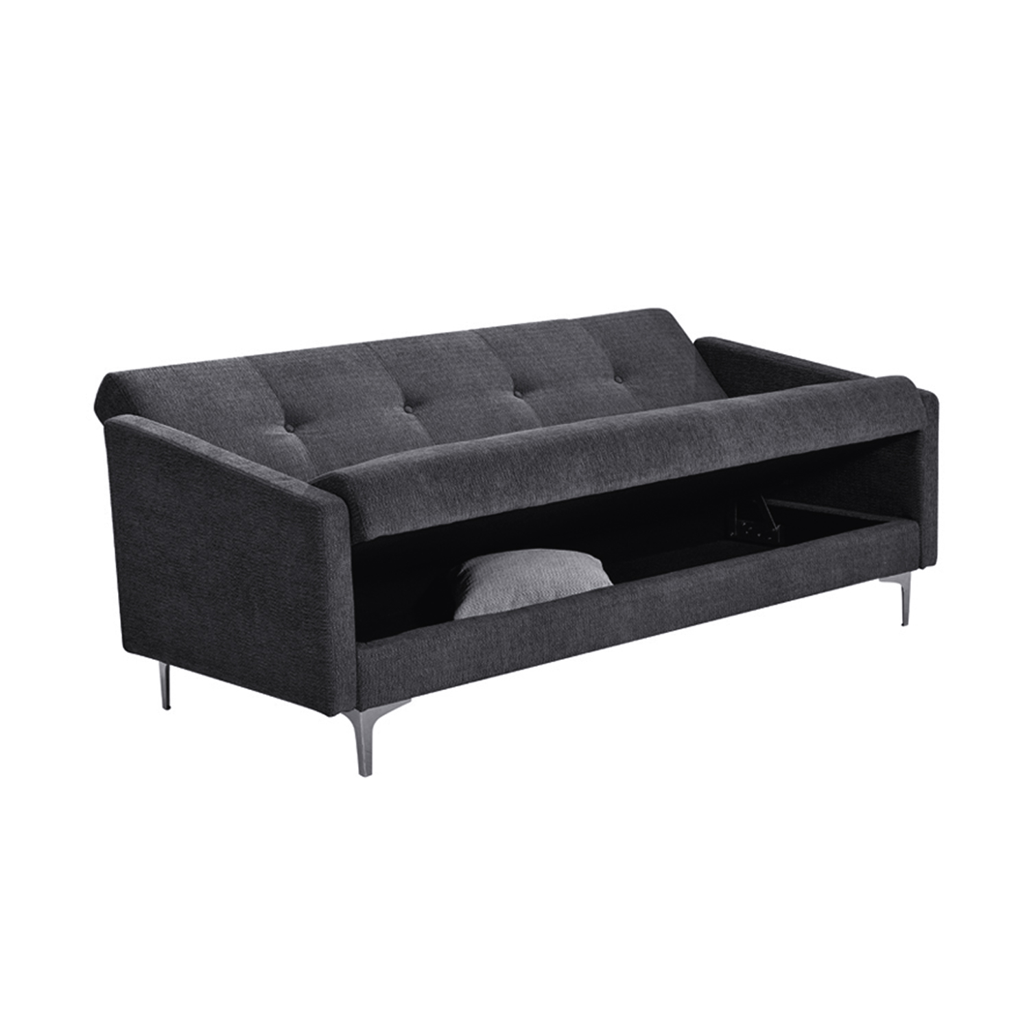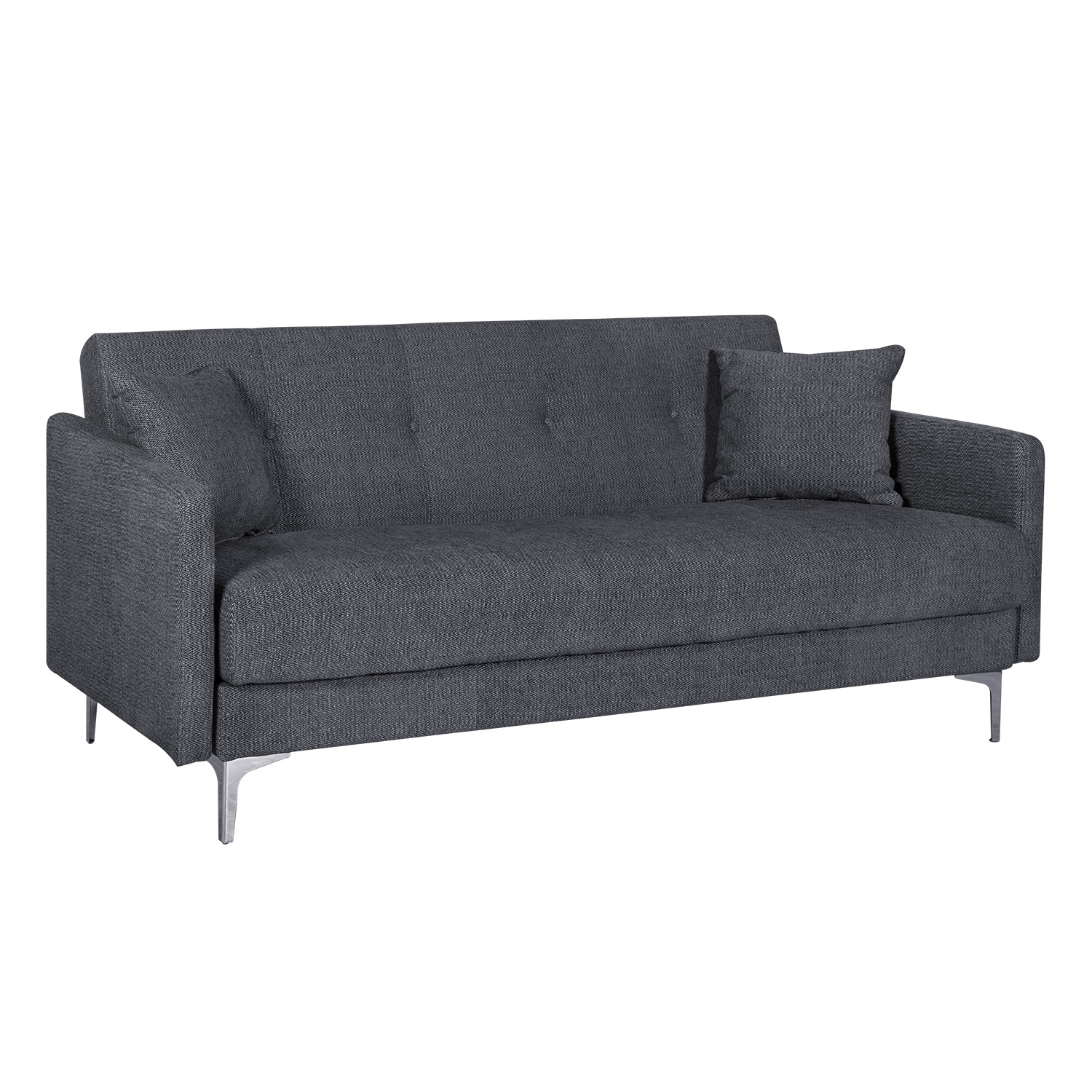 Sofa lova LOGAN pilka. Sofoje-lovoje įrengta praktiška ir erdvi skalbinių dėžė. Į komplektą įeina dvi minkštos sofos pagalvėlės. Sofa aptraukta 100 % poliesterio audiniu. Apmušalas: putų poliuretanas. Rėmas pagamintas iš medžio. Sofa turi zigzaginę pakabą. Sofos kojos pagamintos iš metalo. Sofa pagaminta iš medžio, turi medinį pagrindą. Miegamojo ploto matmenys atidarius yra 183x117x44 cm. Gaminio matmenys 199x86xH90 cm.