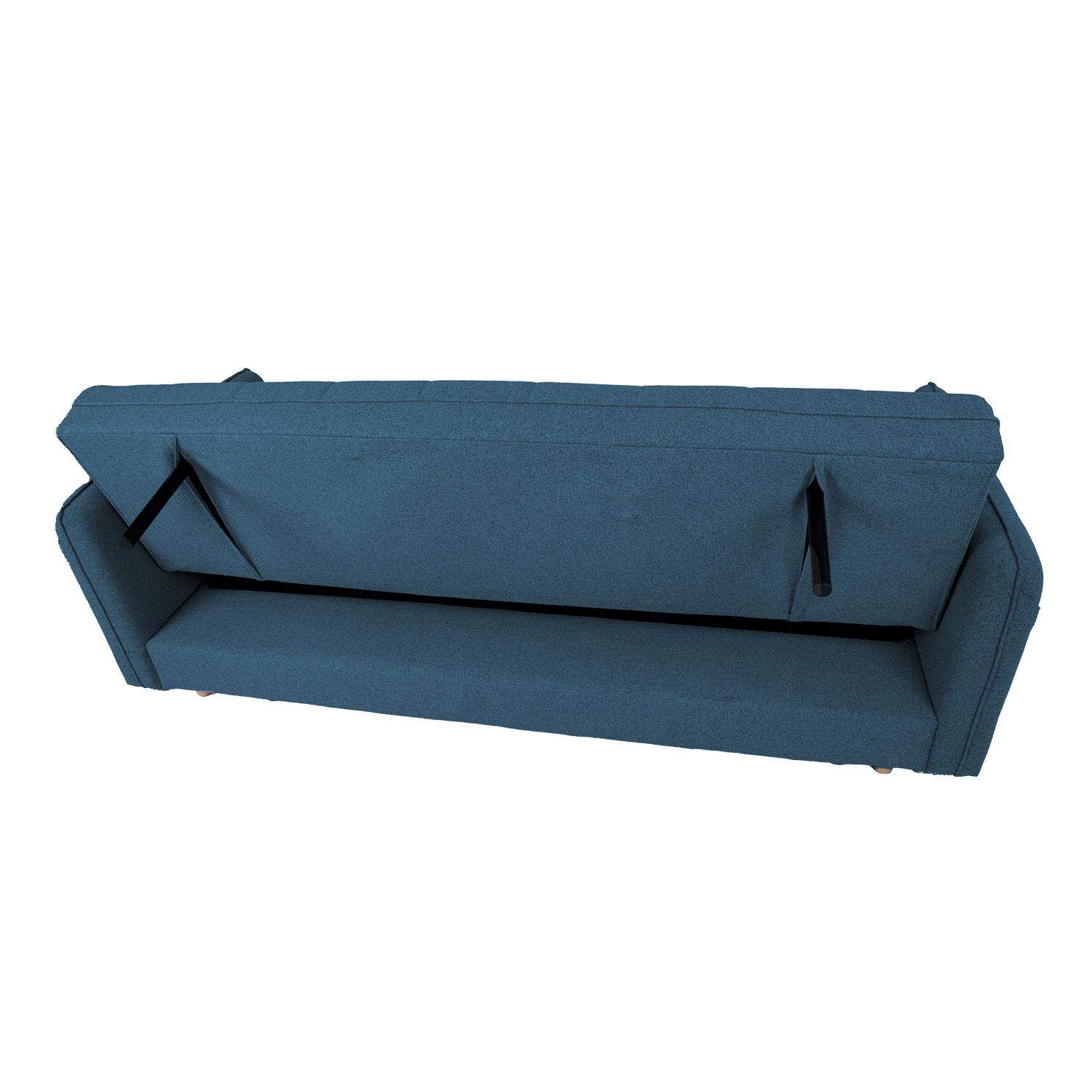Sofa lova VISBY su praustuvu, mėlyna. Užvalkalo medžiaga: 100 % poliesterio audinys. Rėmas: medis, fanera. Apmušalas: poliuretano putos. Sofoje yra paprastas paspaudimo-užsegimo mechanizmas. Po sėdyne yra daiktadėžė. Bendrieji sofos matmenys: 200x88xH93 cm. Atidarytos sofos-lovos matmenys 180x110xH46 cm. Sofa turi šviesaus medžio kojas.