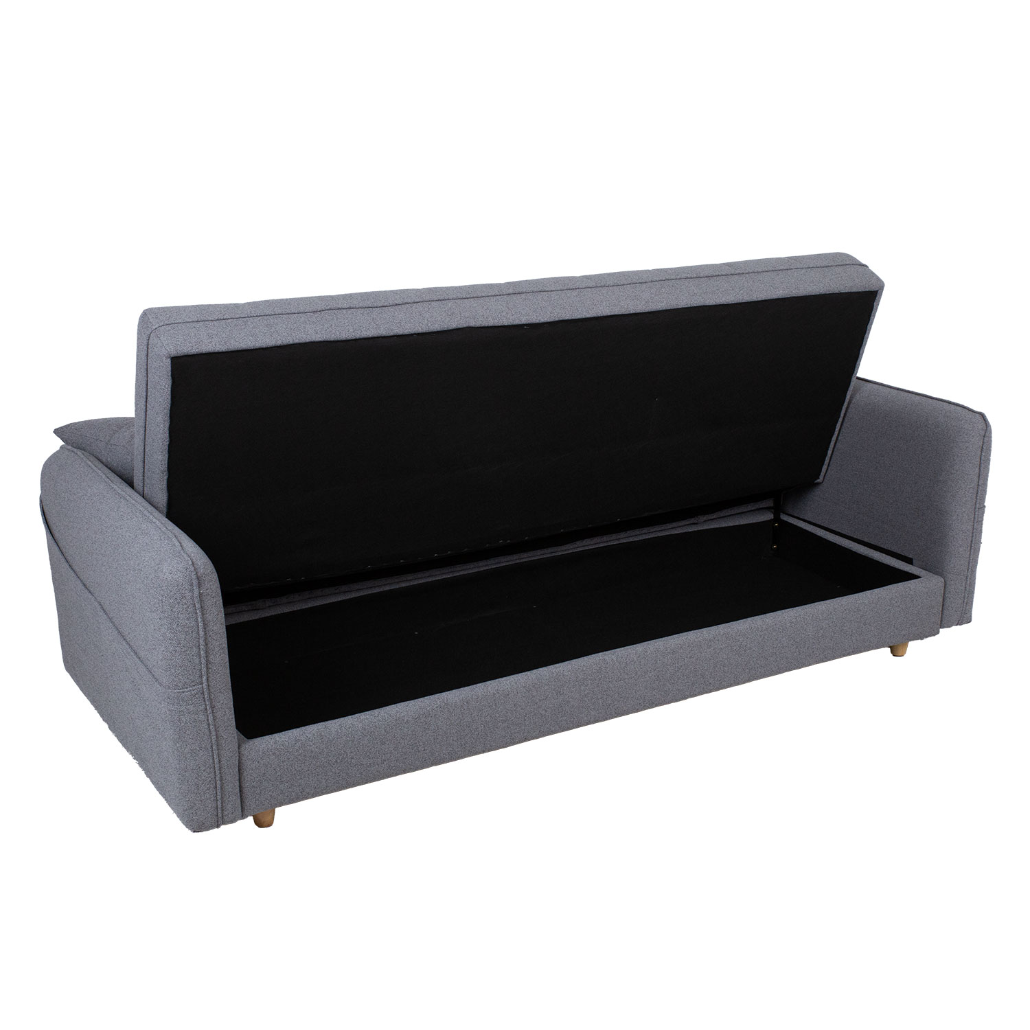 Sofa lova VISBY su praustuvu, pilka. Užvalkalo medžiaga: 100 % poliesterio audinys. Rėmas: medis, fanera. Apmušalas: poliuretano putos. Sofoje yra paprastas paspaudimo-užsegimo mechanizmas. Po sėdyne yra daiktadėžė. Bendrieji sofos matmenys: 200x88xH93 cm. Atidarytos sofos-lovos matmenys 180x110xH46 cm. Sofa turi šviesaus medžio kojas.