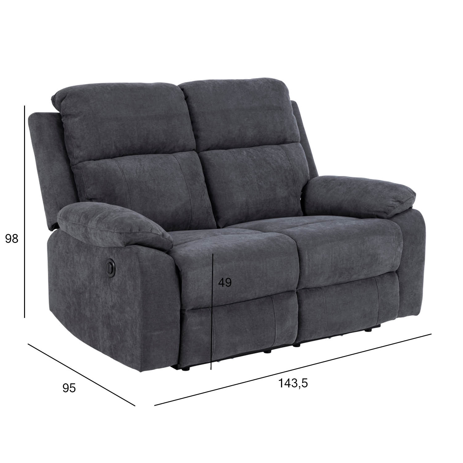 Sofa MORA 143,5x95xH98cm, elektrinis atlenkiamasis minkštasuolis. Sofa-lovas idealiai tinka patogiam sėdėjimui ir atsipalaidavimui. Ji minkšta, kviečianti ir gali būti reguliuojama taip, kad atitiktų jūsų mėgstamą sėdėseną. Naudodamiesi elektrine funkcija sėdynę sureguliuokite pagal savo poreikius. Dvi atsilenkiančios sėdimosios dalys su sklandžiu elektriniu atlošo reguliavimu. Audinys: tamsiai pilkas, 100 % poliesteris, „Martindale”: > 25.000. Kojų rėmas: metalas, juodas. Sėdynės aukštis 49 cm. PRIEŽIŪRA: Priežiūra apsiriboja dulkių siurbliu ir dėmių šalinimu. Reikia atsargiai šalinti dėmes. Pirmiausia išbandykite dėmių šalinimo priemones mažiau matomoje vietoje ir atitinkamai elkitės. Niekada nenaudokite tirpiklių. Nestatykite baldų tiesioginiuose saulės spinduliuose. Pagrindą kasdien valykite sausu, muiluotu vandeniu ištrintu skudurėliu. Paviršių sausai nušluostykite šluoste, kad nerūdytų. Netrinkite paviršiaus kietais daiktais.