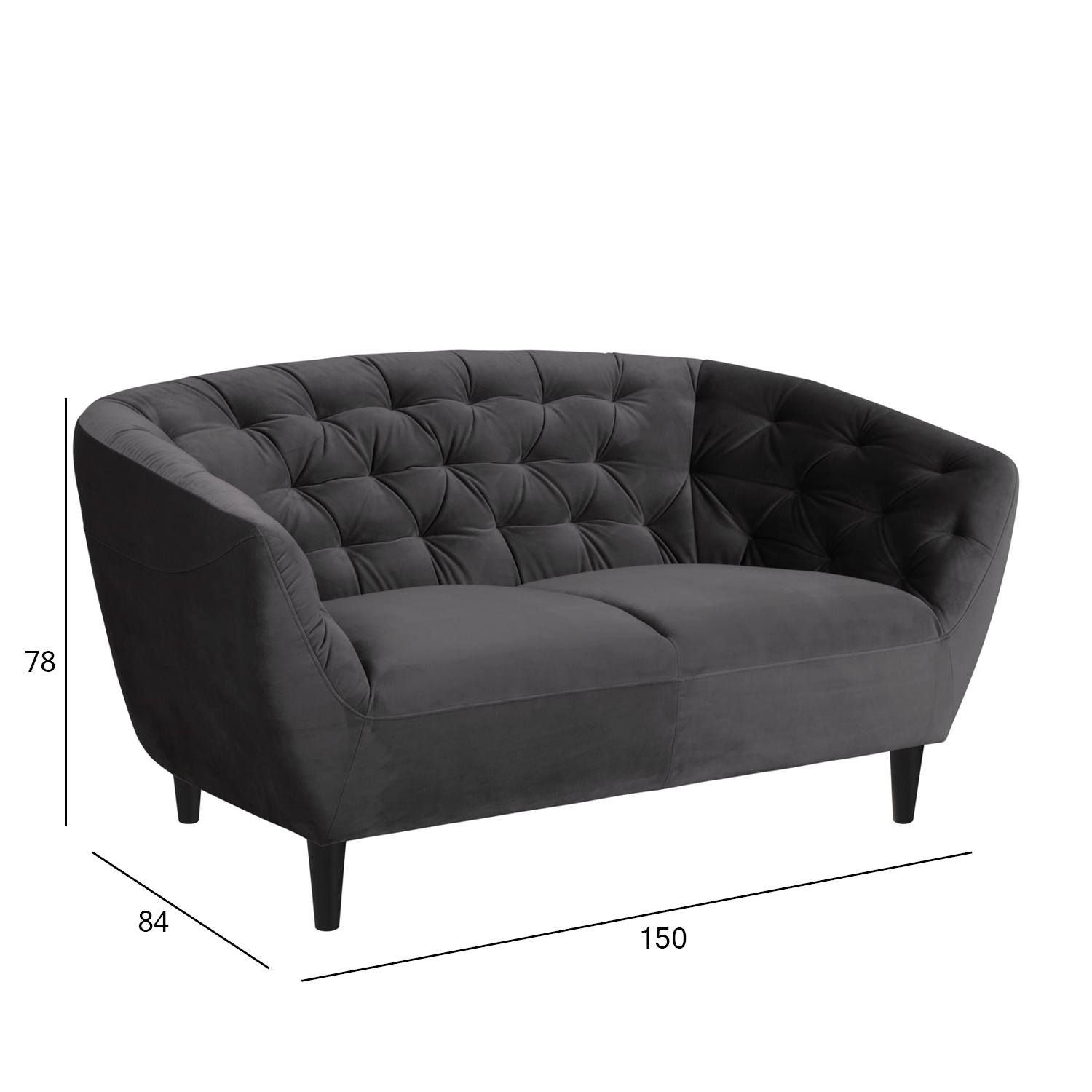 Sofa RIA 84x150xH78cm, 2 sėdimų vietų, užvalkalas: audinys, spalva: tamsiai pilka, kojos: kaučiukmedis, spalva: juoda.