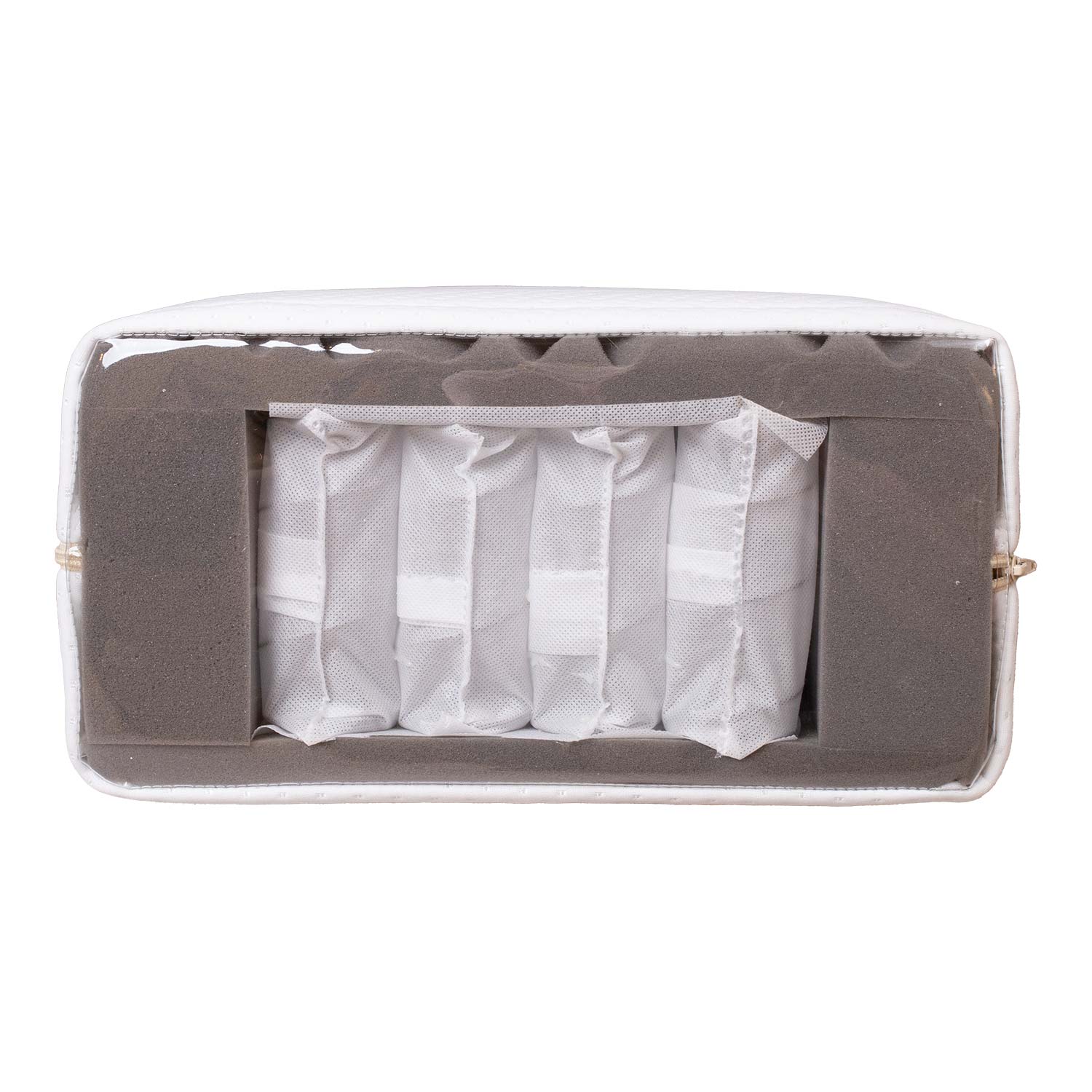 Čiužinys iš vienos pusės paminkštintas aukštos kokybės profiliuotomis EGG SHAPE putomis (storis 4 cm), kurios užtikrina gerą oro cirkuliaciją ir drėgmės nutekėjimą.