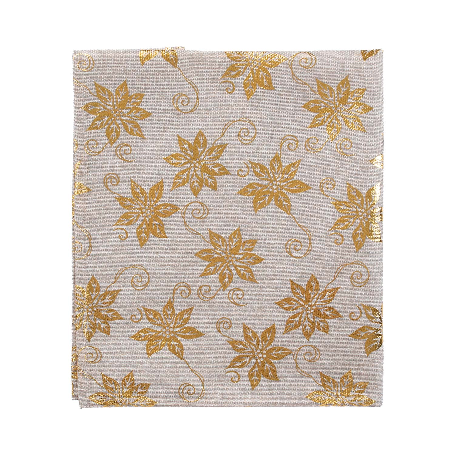 Lininis audinys GLORY 68x68cm, auksiniai kalėdiniai lapai. Medžiaga: 100% poliesteris, audinys 567. PRIEŽIŪRA: galima skalbti skalbyklėje 30 laipsnių temperatūroje.