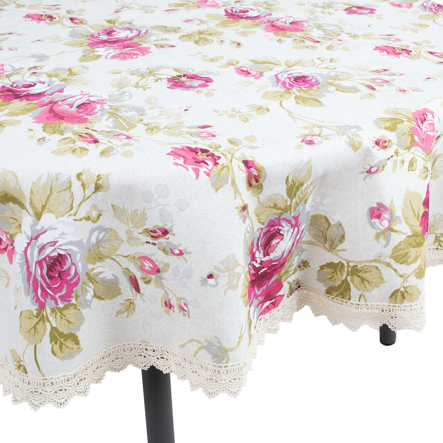 Staltiesė LONETA su nėriniais, D170 cm, rožės. 50 % poliesteris, 50 % medvilnė, audinys 422.PRIEŽIŪRA: galima skalbti skalbyklėje 30 laipsnių temperatūroje.