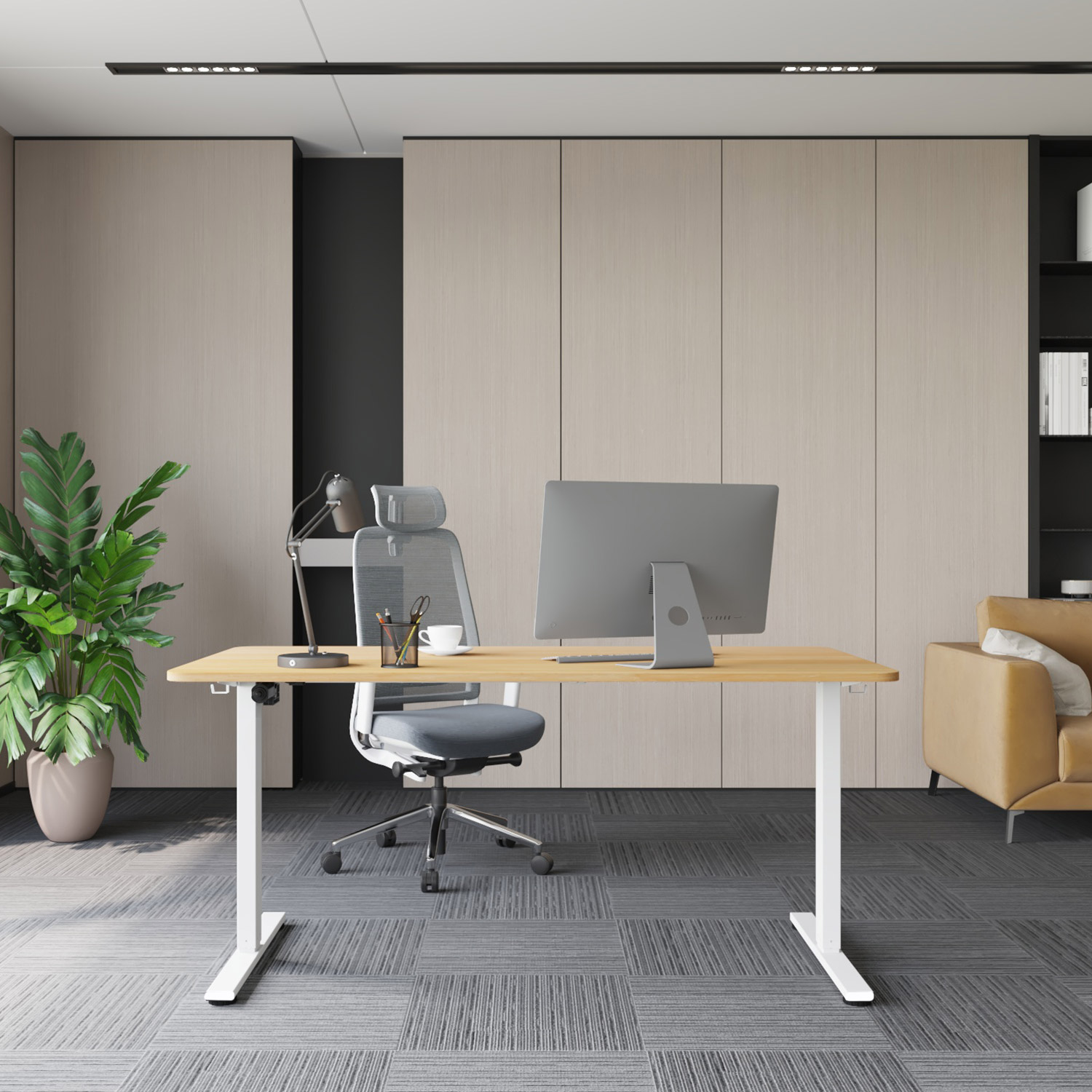 Elektros variklis ir dviejų pakopų kėlimo sistema suteikia laisvę patogiai keisti padėtį ir dirbti pakaitomis sėdint ir stovint.