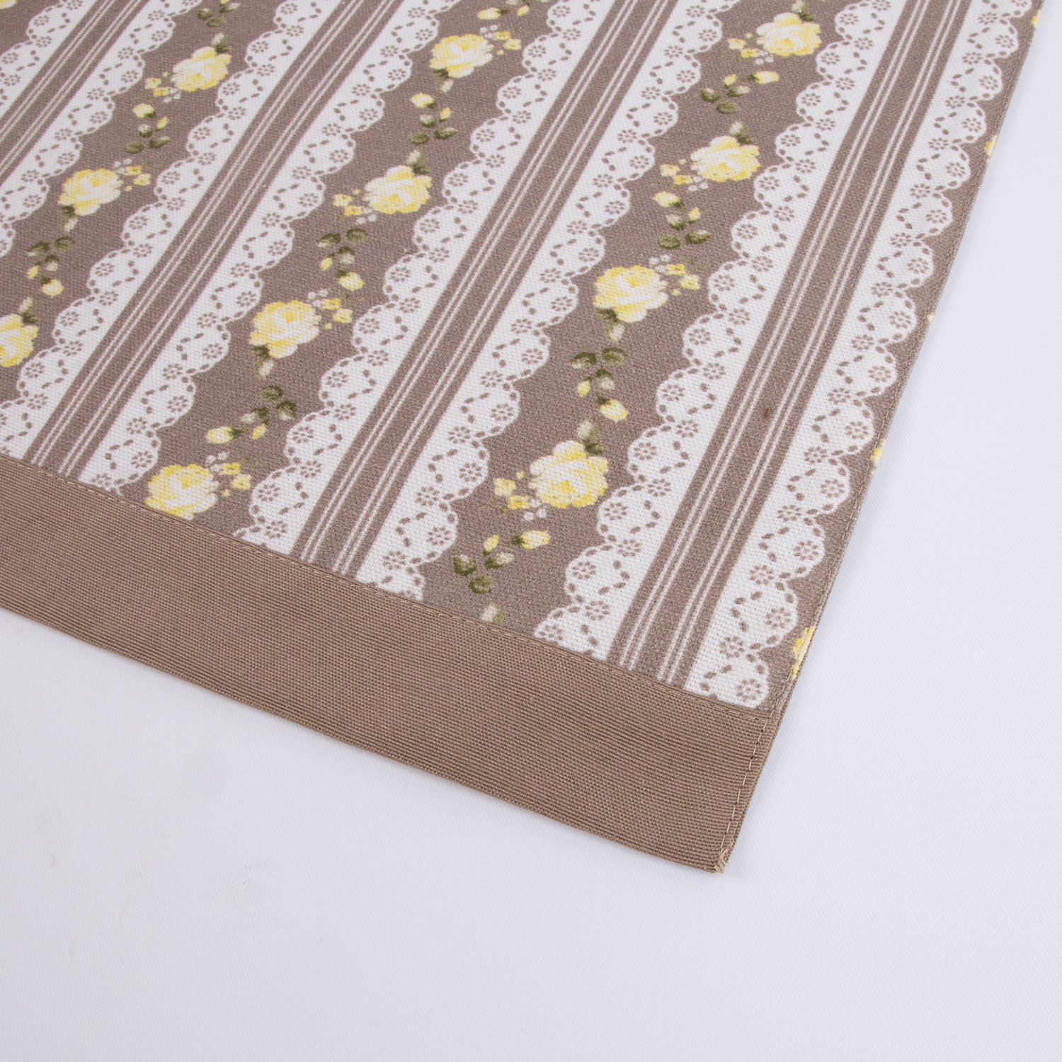 Linija ADELINE 30×45 cm. Ant lino yra pilkšvai rudų atspalvių nėrinių motyvas. Audinys pagamintas iš 50 % medvilnės ir 50 % poliesterio, audinio kodas 977, 159. Lininio audinio dydis – 30×45 cm.