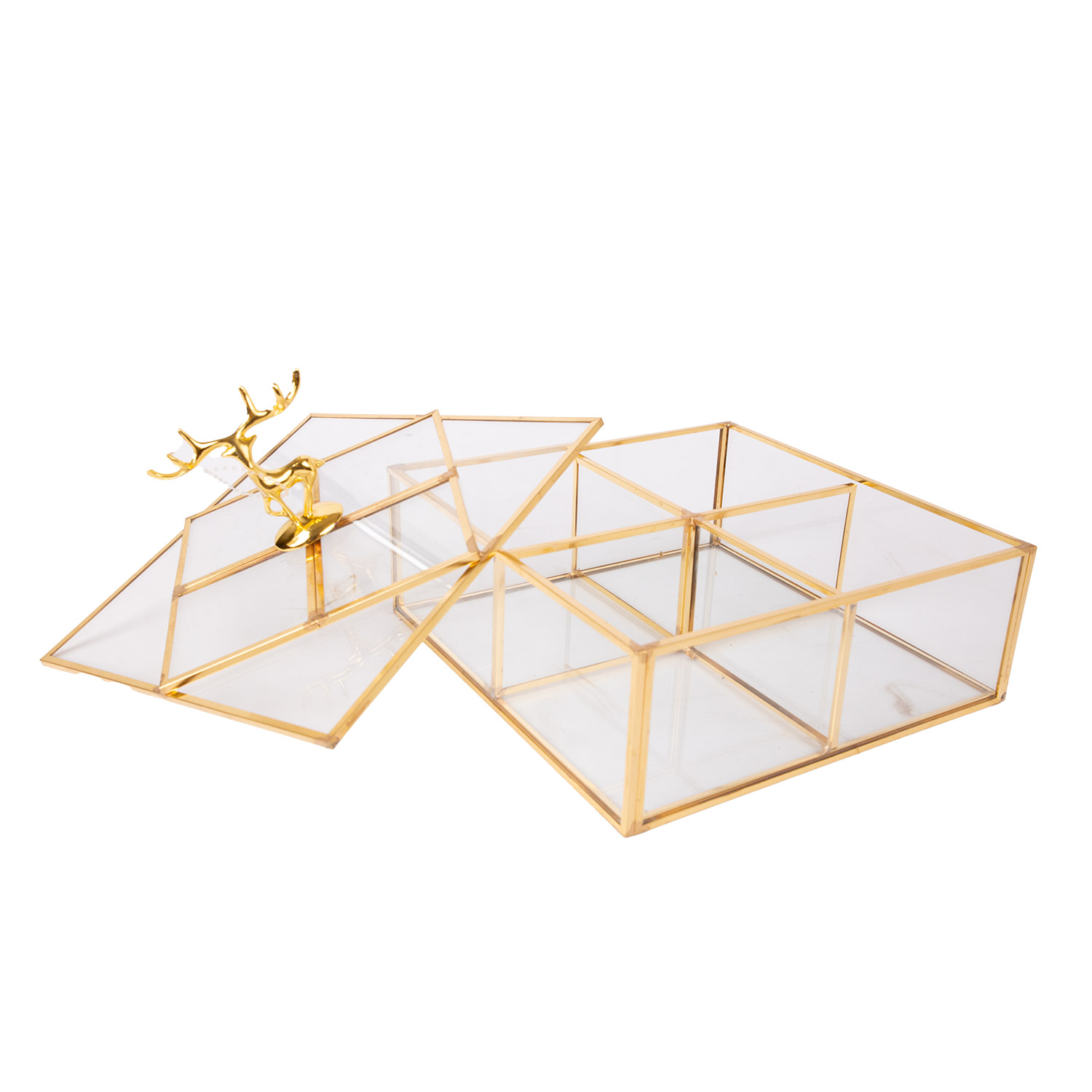 Stiklinė dėžutė BERYL 18x18xH6cm, aukso spalvos