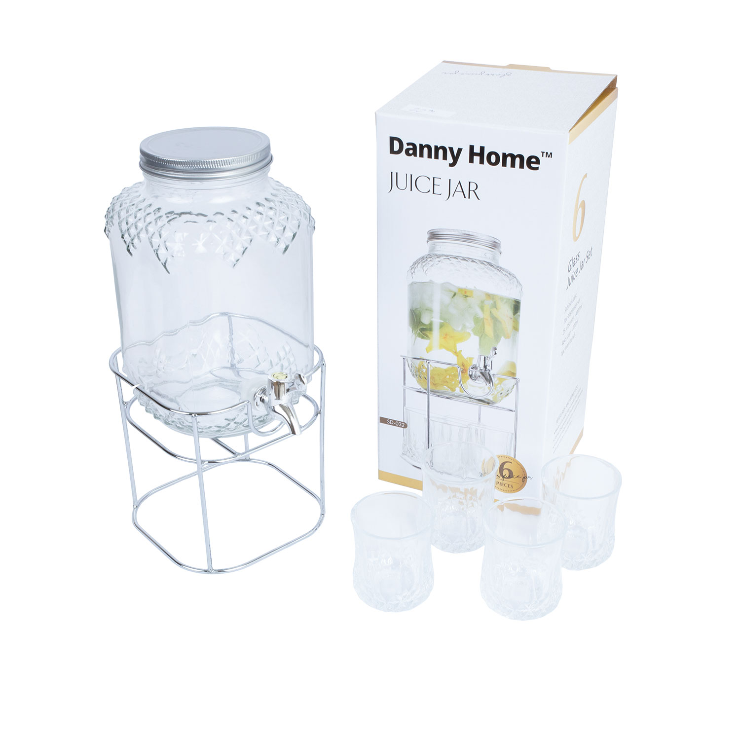 Stiklinių indų +4 akiniai PARTY SET 4L, su stovu