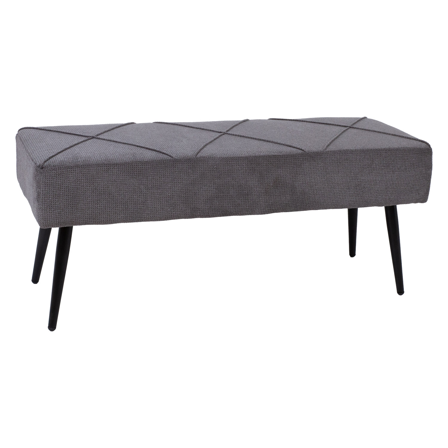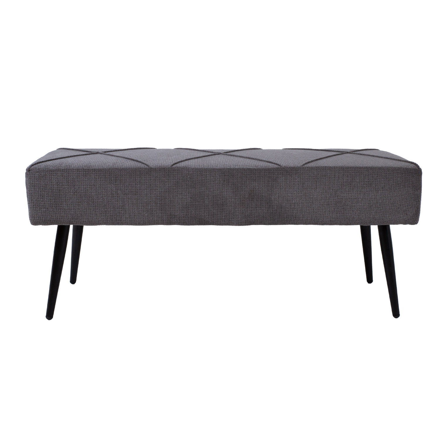 Suknelė KELSI 100x36x43cm, mock. Suolo sėdynė yra minkšta ir aptraukta poliesterio audiniu. Suoliuko kojos pagamintos iš metalo ir padengtos juoda milteline danga.