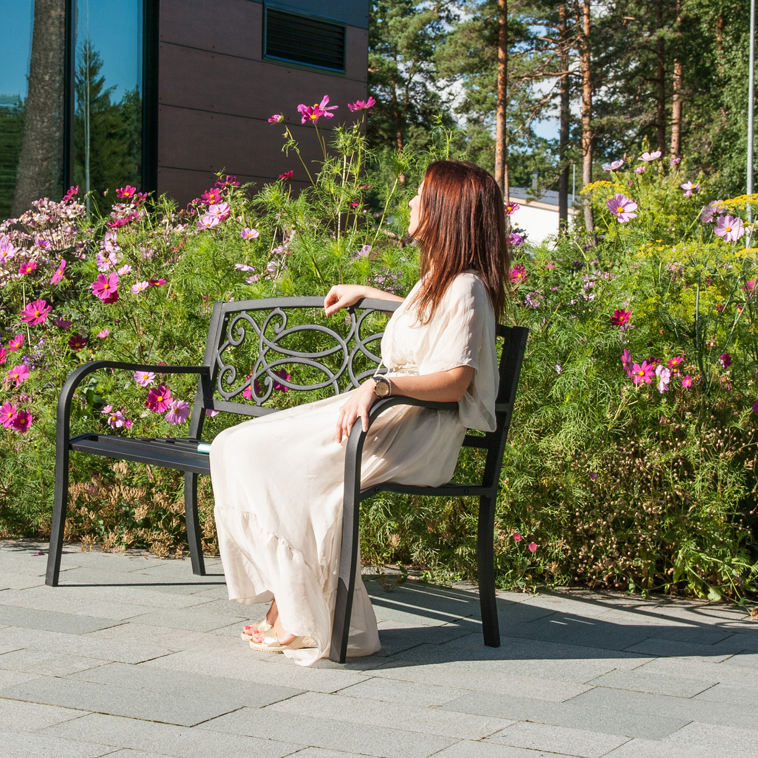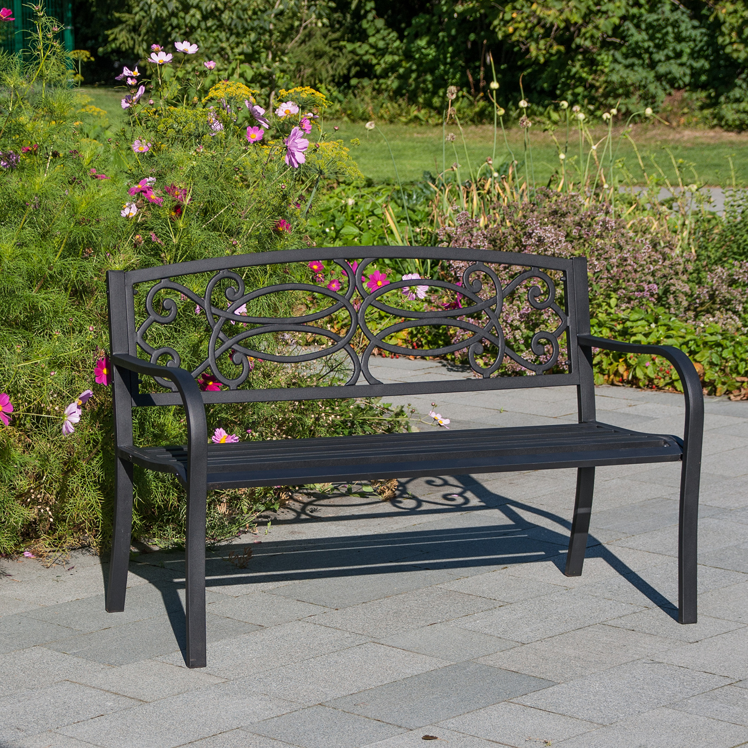 Rožinė VERDE gėrimas. Rožinė yra patogus ir vietą taupantis sprendimas mažesniam kiemeliui ar sodui. Tai maloni vieta mėgautis gražiu oru dieną arba jaukiai praleisti vakarą. Pink yra pagamintas iš juodo plieno. Gaminys atsparus besikeičiančioms oro sąlygoms. Suoliuko leistinas svoris yra 250 kg, jo matmenys 128x59xH85 cm.