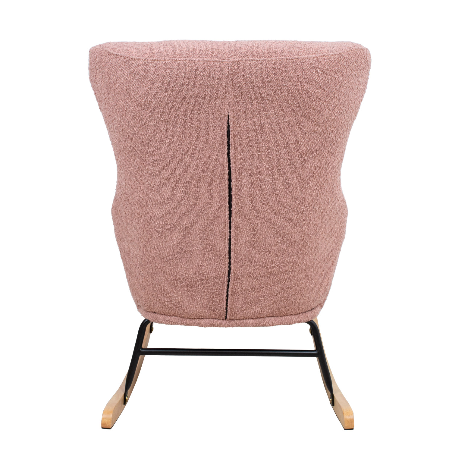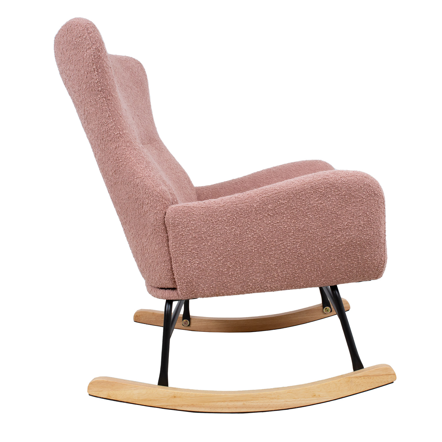 Supamasis krėslas ROMY rožinės spalvos. Sėdynė aptraukta poliesterio audiniu. Metalinis pagrindo rėmas padengtas juoda milteline danga. Kojos yra šviesaus medžio. Bendrieji supamojo krėslo matmenys: 69x80xH96 cm, sėdynės plotis 44 cm, sėdynės gylis 50 cm, sėdynės aukštis 48 cm. Porankio aukštis nuo žemės yra 60 cm. Ribinis svoris 110 kg.
