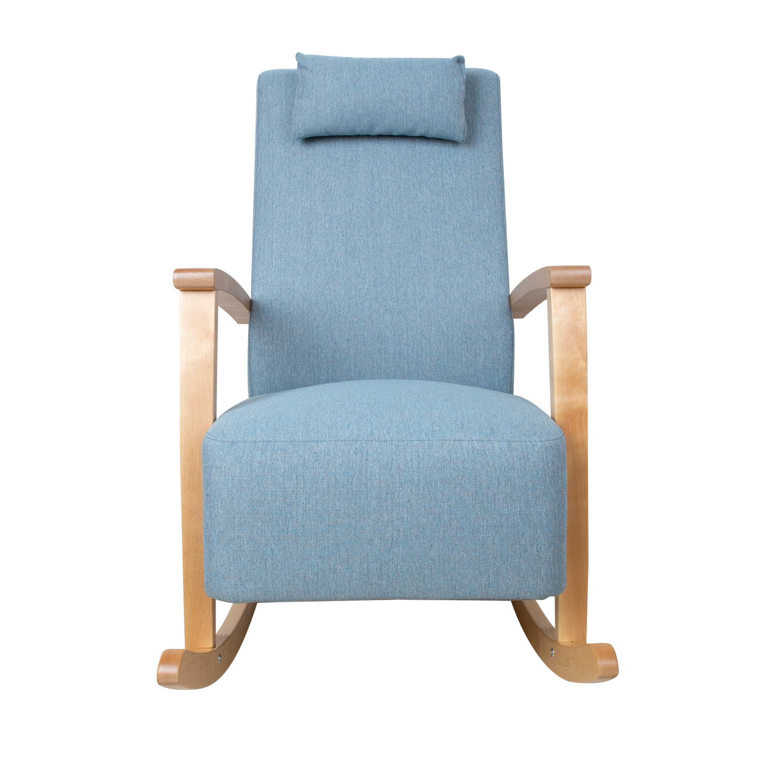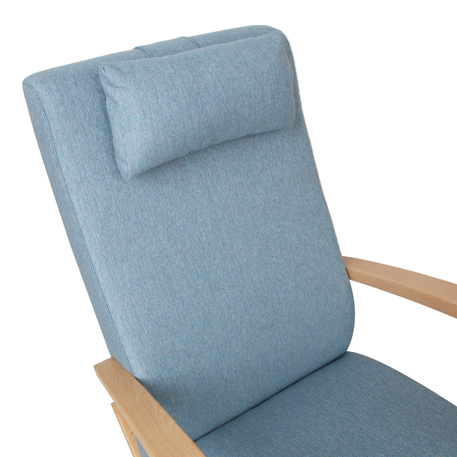 Supamasis krėslas VENLA šviesiai mėlynos spalvos. Garbingas ir patogus supamasis krėslas, kuris toli gražu nėra tik senelių mėgstamas – jis puikiai tinka atsipalaiduoti visiems. Supamasis krėslas yra malonus kambario akcentas, o dėl savo tvirto ir aiškaus dizaino jis puikiai dera prie bet kokio interjero stiliaus. Šviesios spalvos kojos ir porankiai pagaminti iš medžio masyvo. Sėdynės rėmas pagamintas iš beržo faneros ir medžio masyvo. Apmušalas pagamintas iš patvaraus poliuretano. Sėdynė aptraukta aukštos kokybės minkštiklio audiniu „Martindale 90 000 – 100 000”. Nedidelė papildoma pagalvėlė ant galvos atramos yra nuimama ir reguliuojamo aukščio. Pagalvėlės užvalkalas yra nuimamas ir skalbiamas. Bendrieji supamojo krėslo matmenys yra 65,5x102xH104 cm. Sėdynės plotis 54 cm, sėdynės gylis 50 cm. Atlošo aukštis 77 cm. Porankio aukštis nuo sėdynės 23 cm. Supamasis krėslas pagamintas Estijoje.