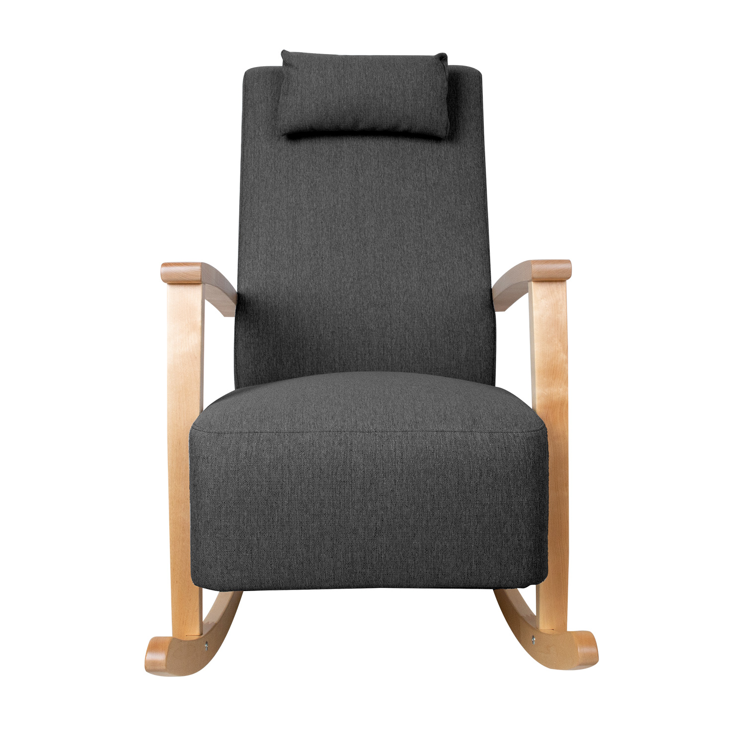 Supamasis krėslas VENLA tamsiai pilkos spalvos. Garbinga ir patogi supamoji kėdė, kurią mėgsta toli gražu ne tik seneliai – ji puikiai tinka atsipalaiduoti visiems. Supamasis krėslas yra malonus kambario akcentas, o dėl savo tvirto ir aiškaus dizaino jis puikiai dera prie bet kokio interjero stiliaus. Šviesios spalvos kojos ir porankiai pagaminti iš medžio masyvo. Sėdynės rėmas pagamintas iš beržo faneros ir medžio masyvo. Apmušalas pagamintas iš patvaraus poliuretano. Sėdimoji dalis aptraukta aukštos kokybės minkštiklio audiniu „Martindale 90 000 – 100 000”. Nedidelė papildoma pagalvėlė ant galvos atramos yra nuimama ir reguliuojamo aukščio. Pagalvėlės užvalkalas yra nuimamas ir skalbiamas. Bendrieji supamojo krėslo matmenys yra 65,5x102xH104 cm. Sėdynės plotis 54 cm, sėdynės gylis 50 cm. Atlošo aukštis 77 cm. Porankio aukštis nuo sėdynės 23 cm. Supamasis krėslas pagamintas Estijoje.