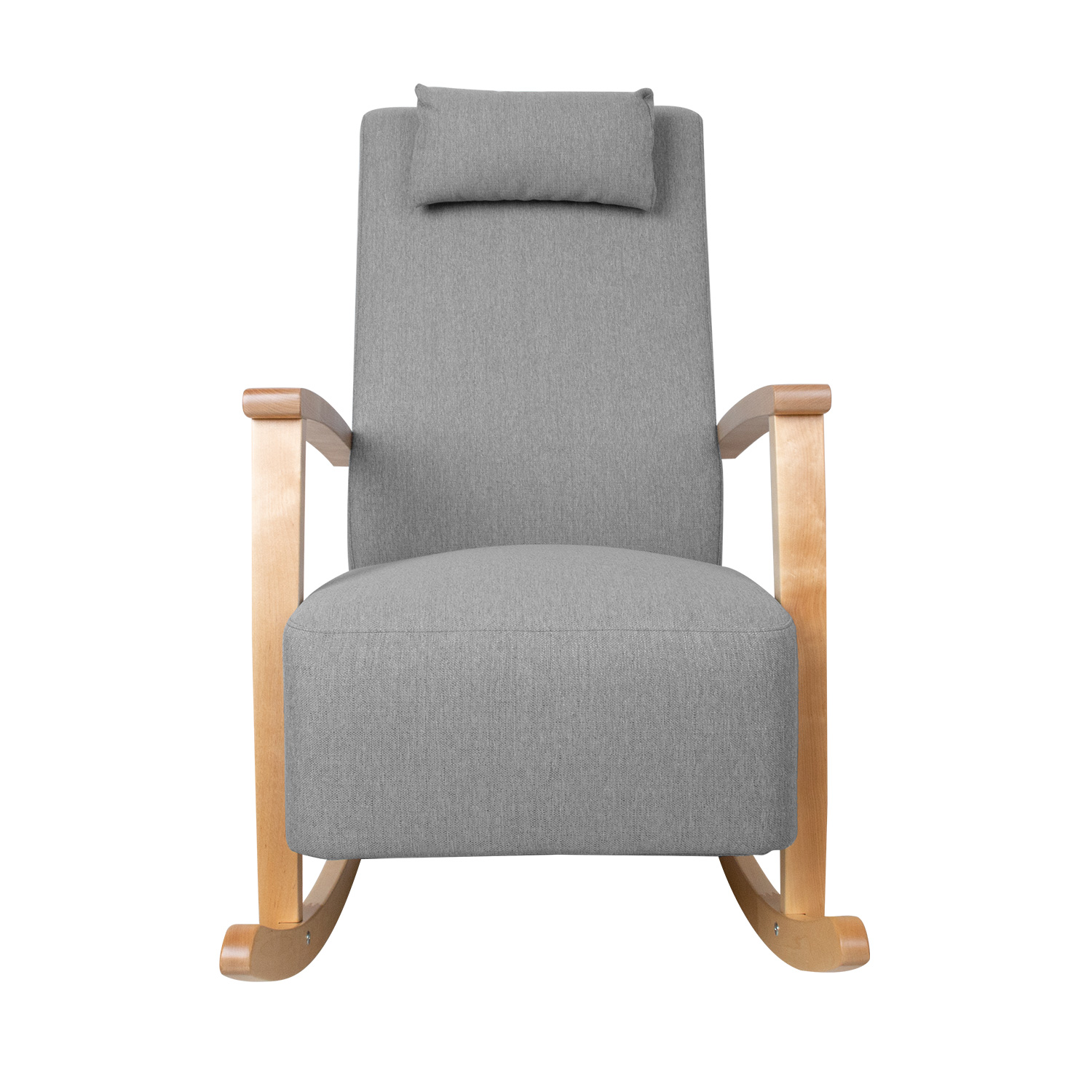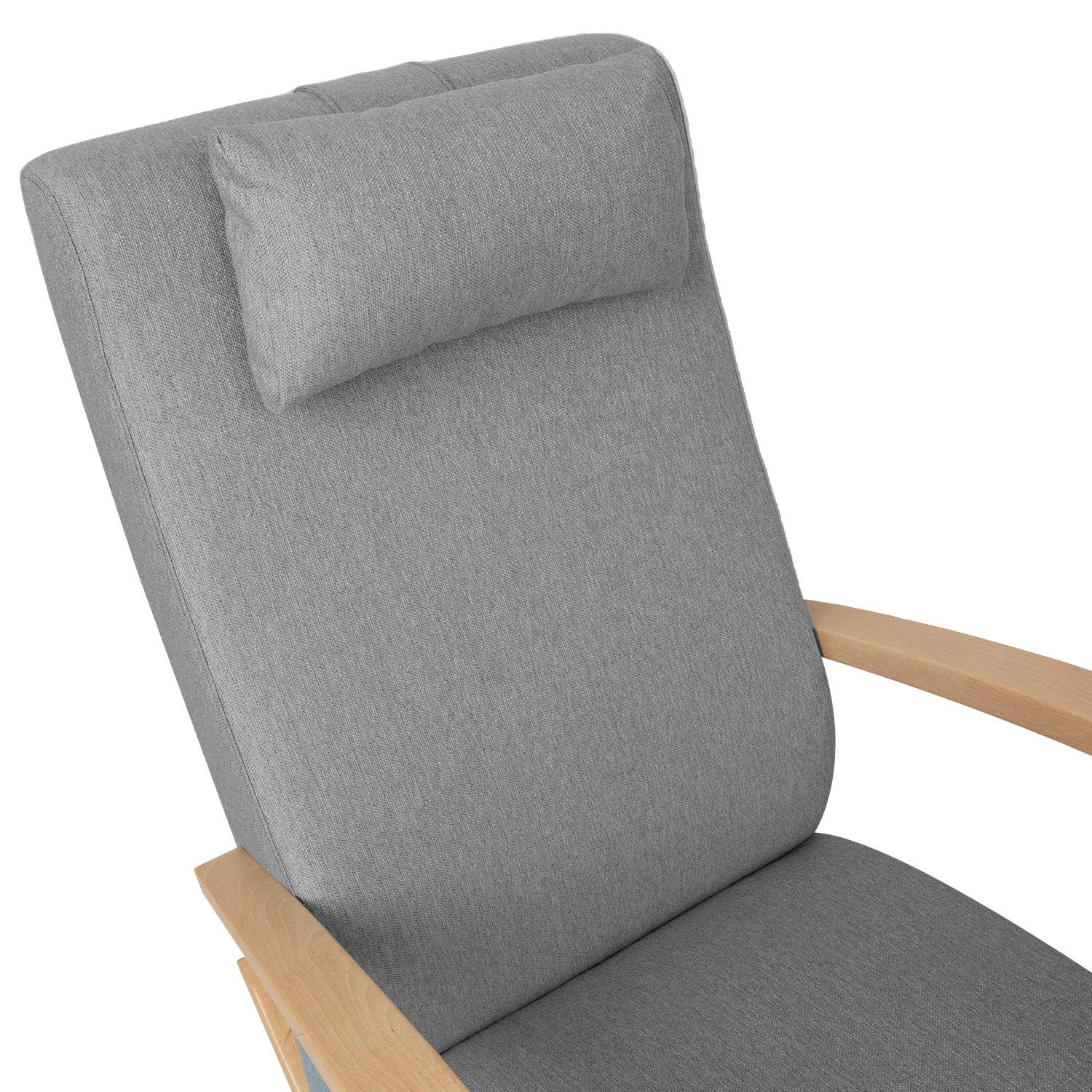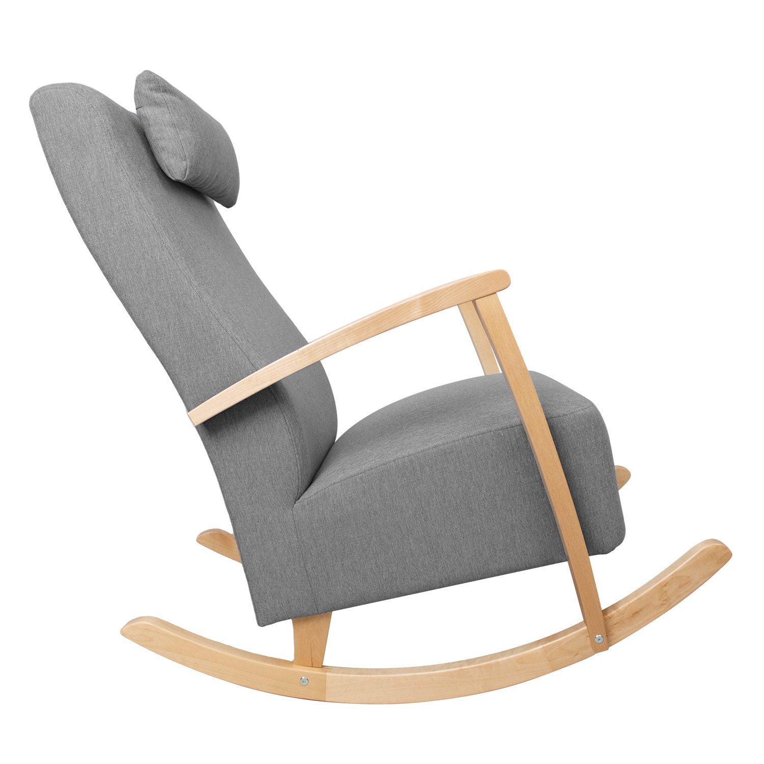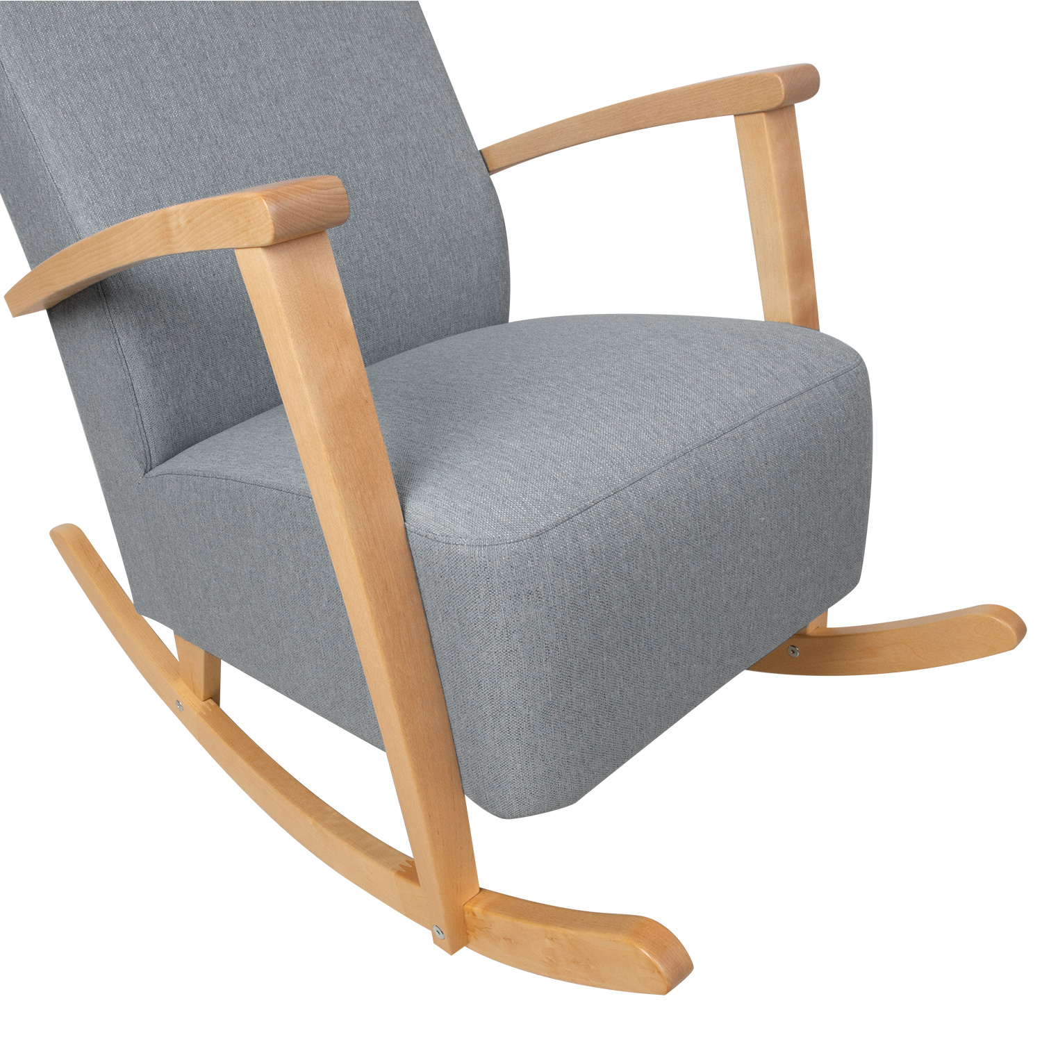 Supamasis krėslas VENLA pilkos spalvos. Šį garbingą ir patogų supamąjį krėslą mėgsta toli gražu ne tik seneliai, jis puikiai tinka atsipalaiduoti visiems. Supamasis krėslas yra malonus kambario akcentas, o dėl savo tvirto ir aiškaus dizaino jis puikiai dera prie bet kokio interjero stiliaus. Šviesios spalvos kojos ir porankiai pagaminti iš medžio masyvo. Sėdynės rėmas pagamintas iš beržo faneros ir medžio masyvo. Apmušalas pagamintas iš patvaraus poliuretano. Sėdynė aptraukta aukštos kokybės minkštiklio audiniu „Martindale 90 000 – 100 000”. Nedidelė papildoma pagalvėlė ant galvos atramos yra nuimama ir reguliuojamo aukščio. Pagalvėlės užvalkalas yra nuimamas ir skalbiamas. Bendrieji supamojo krėslo matmenys yra 65,5x102xH104 cm. Sėdynės plotis 54 cm, sėdynės gylis 50 cm. Atlošo aukštis 77 cm. Porankio aukštis nuo sėdynės 23 cm. Supamasis krėslas pagamintas Estijoje.