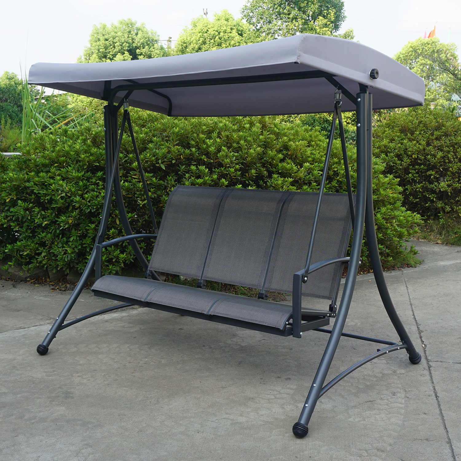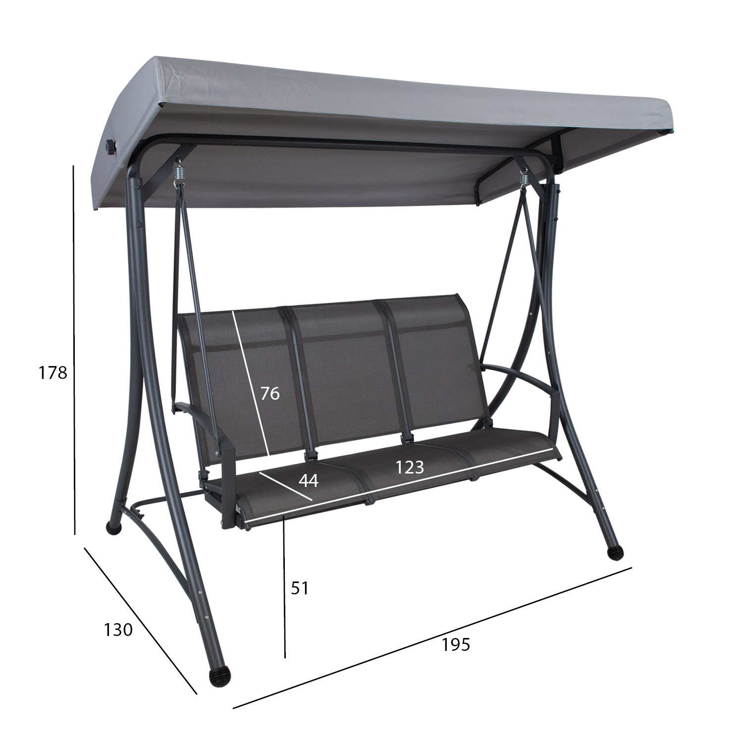 Sodo virtuvė TAMPA 3 vietų, pilka. Sėdynė padengta tekstiline medžiaga, kuri praleidžia orą, greitai džiūsta ir yra lengvai valoma. Sūpynės stogelis padengtas pilkos spalvos poliesterio audiniu (180 g/m²). Stogelio kampas reguliuojamas. Tvirtas ir stabus plieninis sūpynių rėmas padengtas pilka milteline danga. Bendrieji sūpynių matmenys yra 195x130xH178 cm. Rėmo vamzdžių matmenys D48/38/25/22 mm, rankenos matmenys 49×20 mm. Ribinis svoris 250 kg. Gaminys labai patvarus kintamomis oro sąlygomis, jį lengva prižiūrėti. Rekomenduojame naudoti lauko baldų užvalkalus, kad pailgintumėte sūpynių tarnavimo laiką. PRIEŽIŪRA: pasibaigus vasaros sezonui, rekomenduojame sodo baldus laikyti patalpoje. Jei vasaros sezonui, rekomenduojame palikti baldus sode žiemos mėnesiais. Sandėliavimui naudokite sausą ir gerai vėdinamą patalpą.