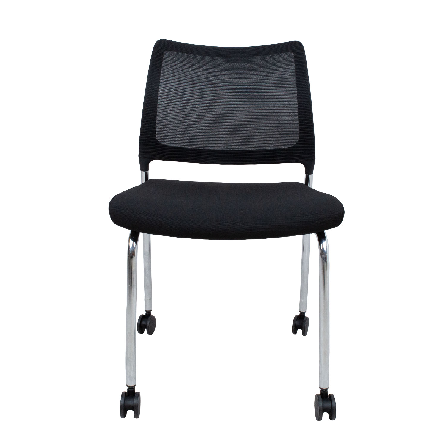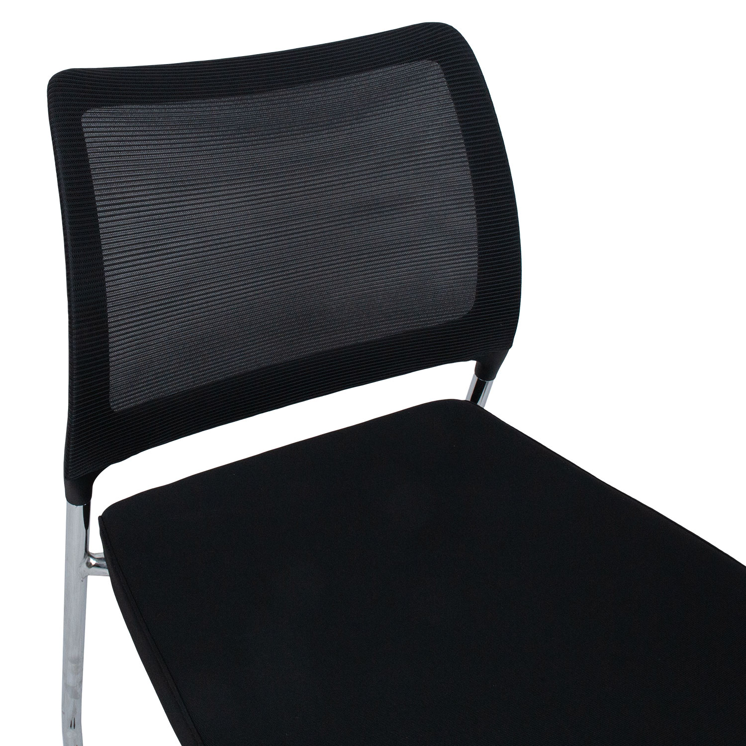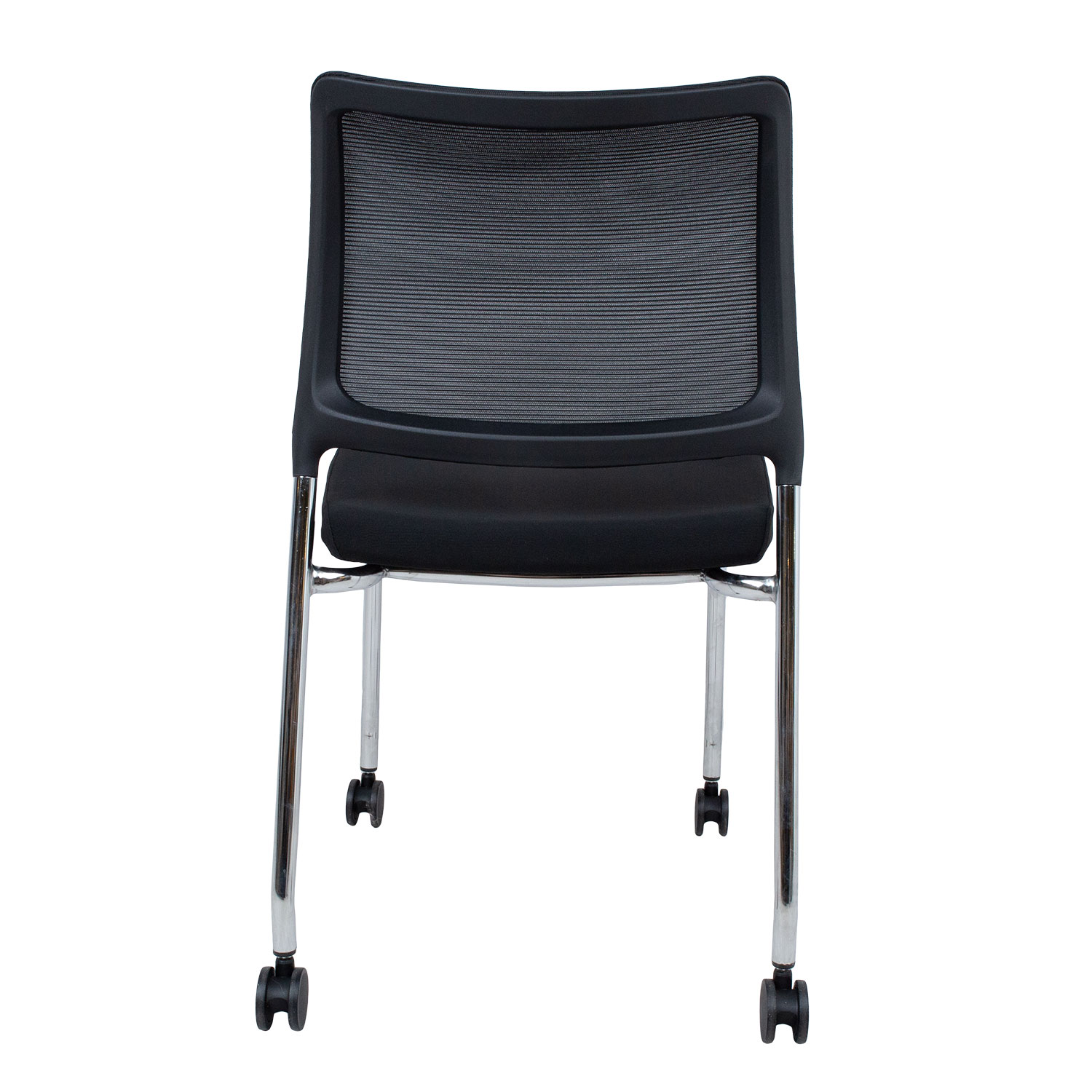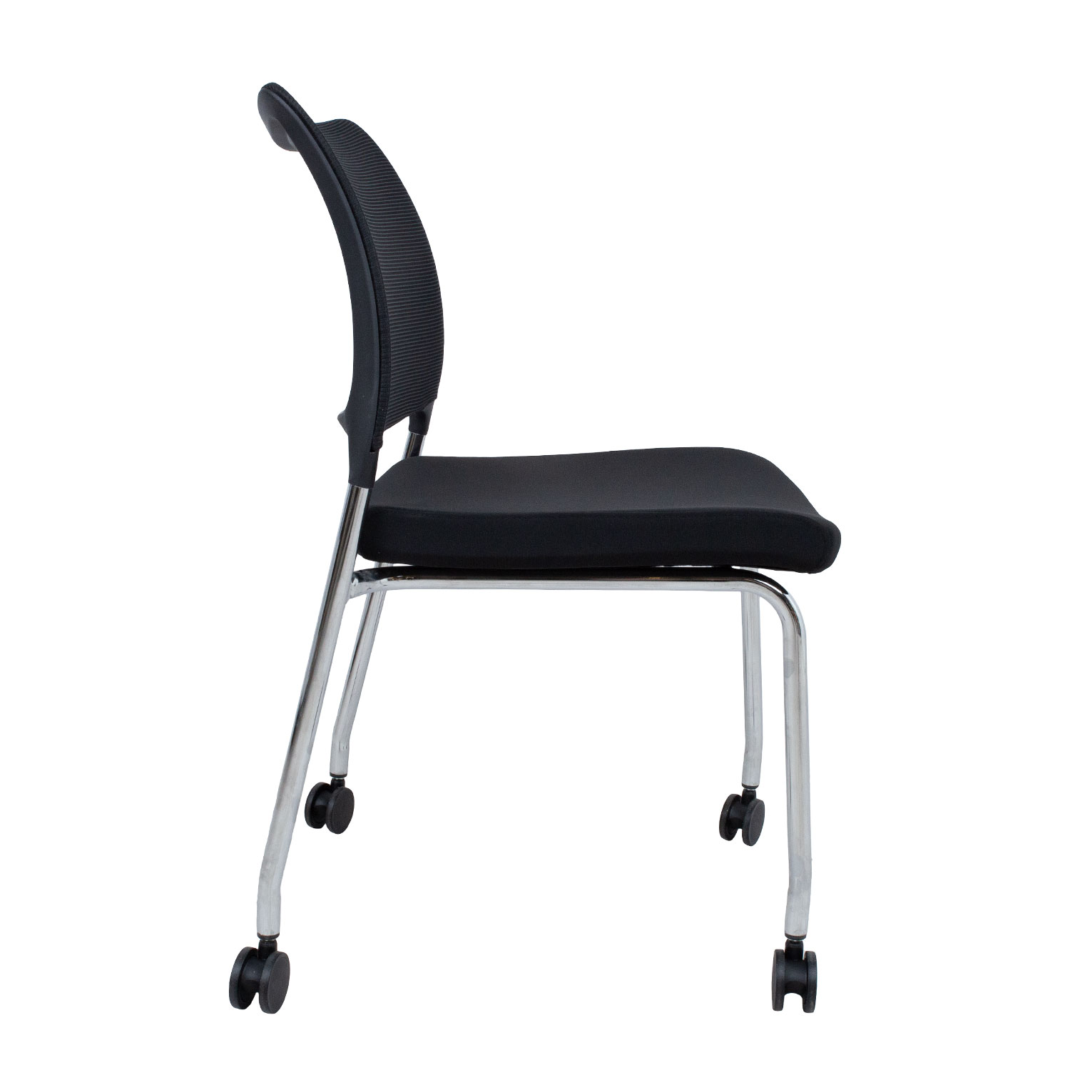 Kliento kėdė VICKI su ratukais, juoda. Plastikinis atlošo rėmas aptrauktas poliesterio tinkleliu. Švelniai apmušta sėdynė aptraukta poliesterio audiniu. Metalinės kėdės kojos ir rėmas chromuoti. Kėdė turi užrakinamus plastikinius ratukus. Bendrieji kėdės matmenys yra 48x55xH83 cm. Sėdynės plotis 48 cm, gylis 46 cm, aukštis 47 cm. Ribinis svoris 120 kg.
