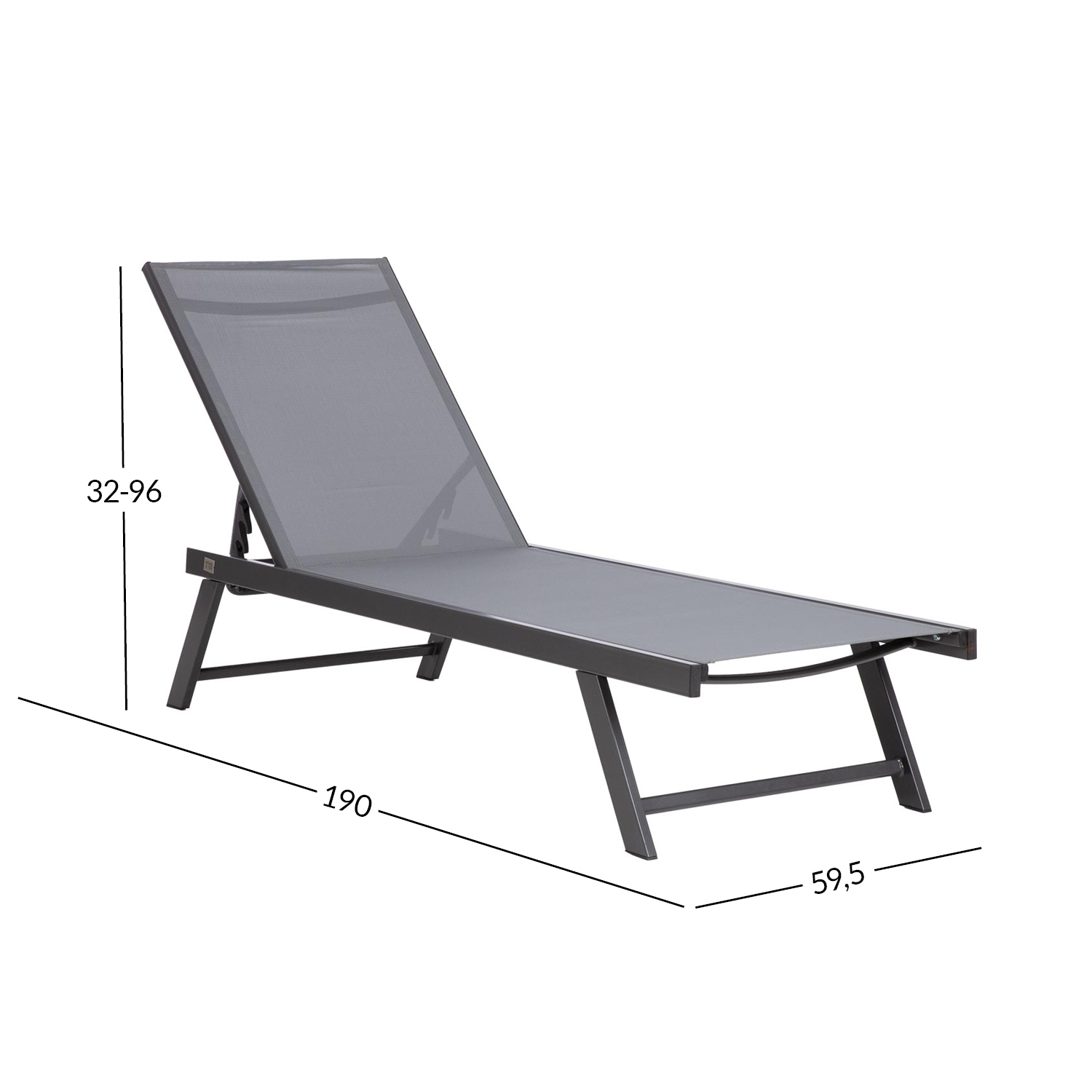 Deck chair ARIO 60x192xH32-96cm, grey.
