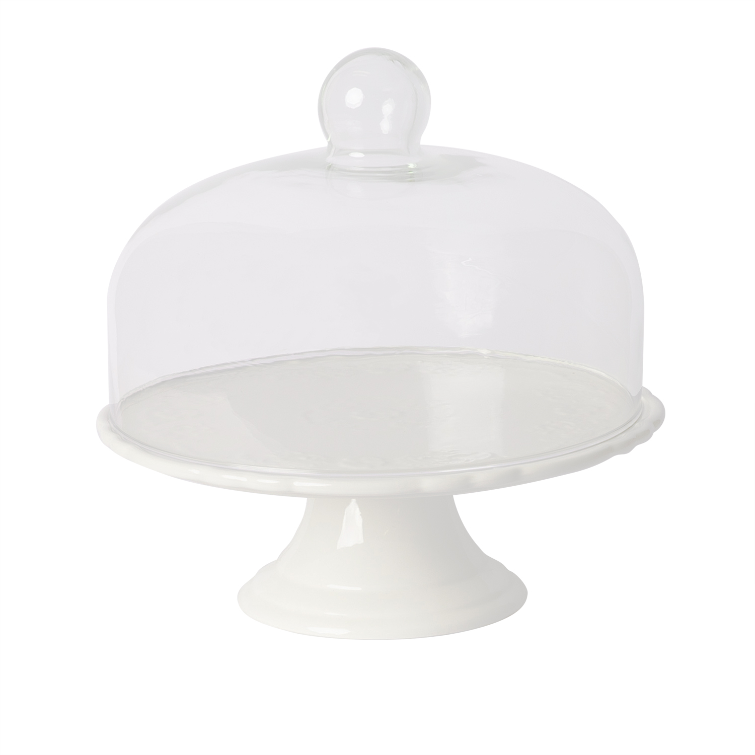 Tortų padėklas su stikliniu dangčiu SOFIA, D28cm, baltas