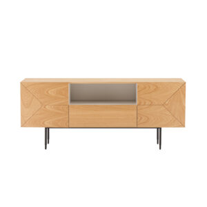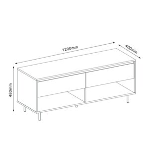 TV stovas AMSTERDAM 160x40xH50cm. Medžiaga: melaminas, spalva: ąžuolas/juoda. Juodos spalvos metalinis rėmas. Tyliai užsidarantys vyriai ir stalčių bėgeliai. Juodos aliuminio rankenos.