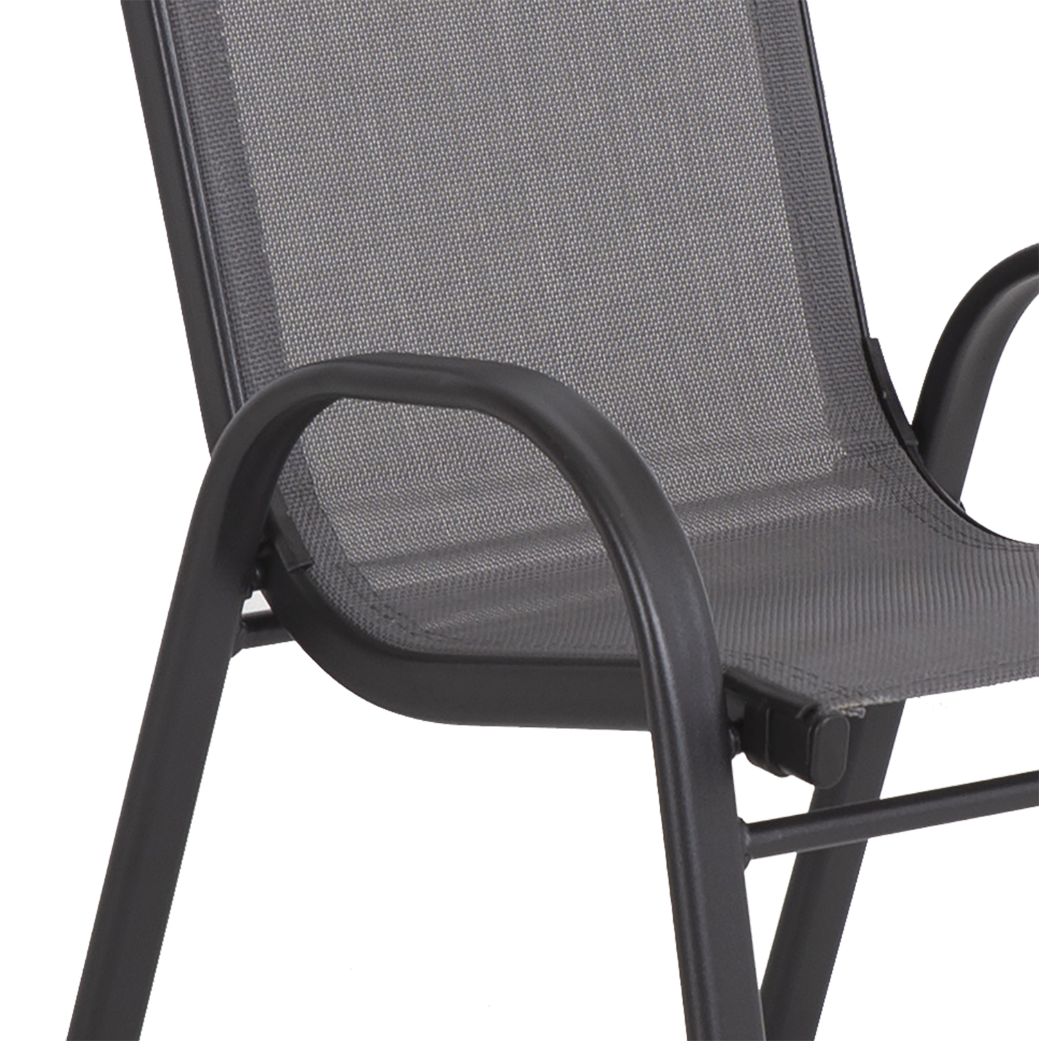 Kėdutė DUBLIN KID, pilka. Tekstilinė kėdutės sėdynė gerai praleidžia orą, greitai džiūsta ir yra lengvai valoma. Kėdutės rėmas ir kojos pagamintos iš plieno ir padengtos juoda milteline danga. Kėdutes galima sukrauti viena ant kitos, kad jas būtų lengva ir taupant vietą laikyti. Bendrieji matmenys yra 36x46xH59 cm. Sėdynės plotis 30 cm, sėdynės gylis 30 cm, sėdynės aukštis 28 cm. Atlošo aukštis 38 cm. Porankio aukštis nuo žemės 36,5 cm. Ribinis svoris 40 kg.