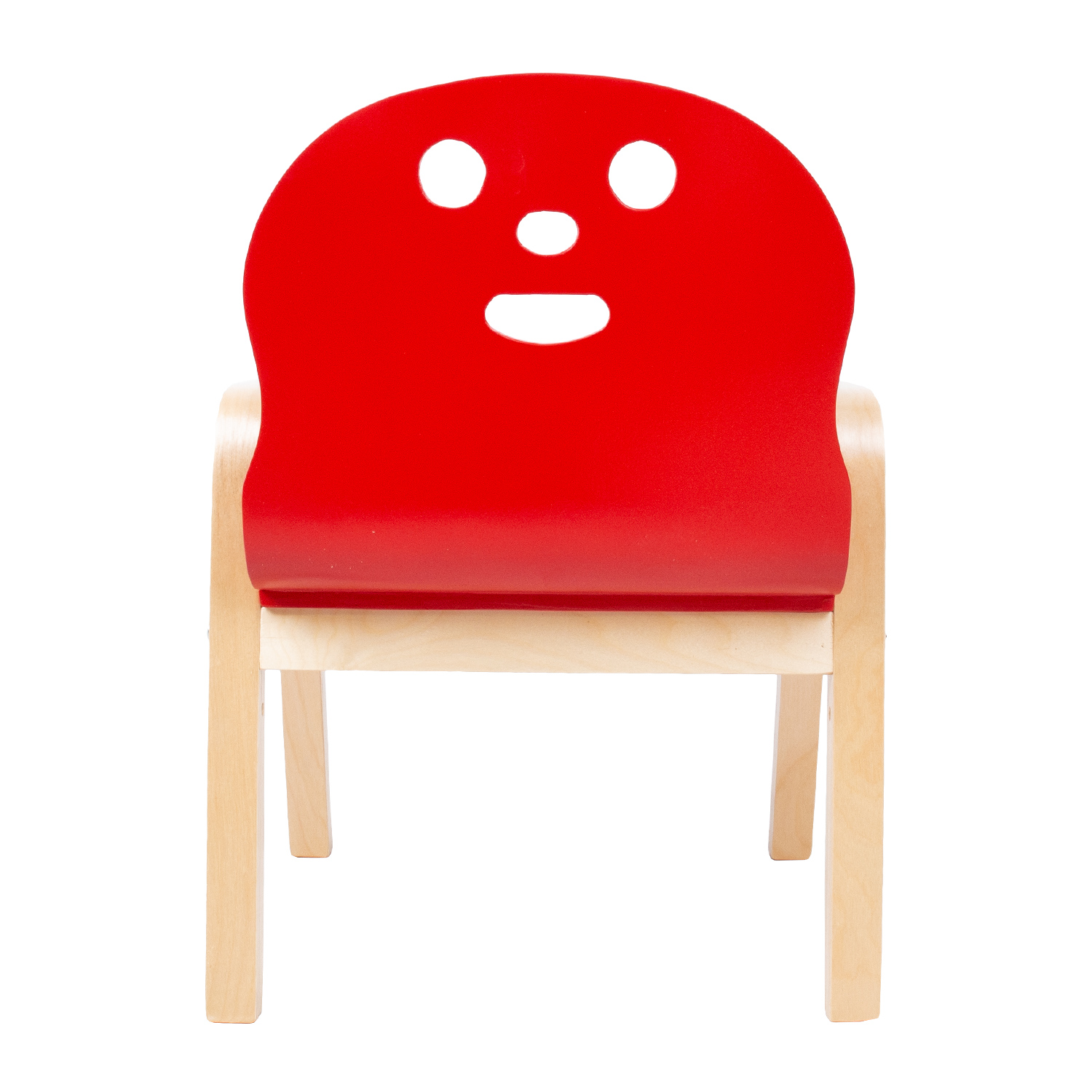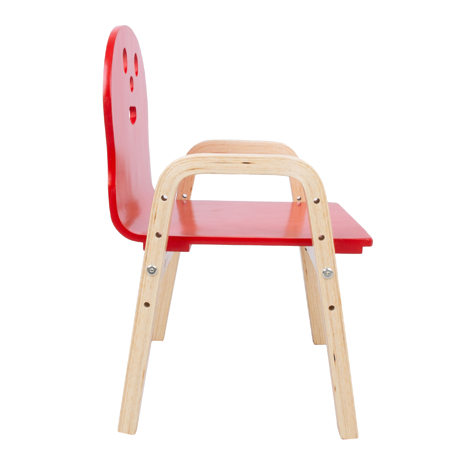 Kėdutė HAPPY, raudona. HAPPY auga kartu su jūsų vaiku! Kėdutės aukštį galima reguliuoti keturis kartus pagal vaiko ūgį – 21/25,5/30/34,5 cm. Bendrieji kėdutės matmenys: 39x36x46,5/51/55,5/60 cm. Sėdynės plotis 33 cm, sėdynės gylis 31 cm, atlošo aukštis 27 cm, porankio aukštis 36 cm. Medžiaga: lenkta fanera su beržo lukštu. Sėdynė dažyta raudonai, kojos ir rėmas padengti natūraliu laku. Ribinis svoris 40 kg.