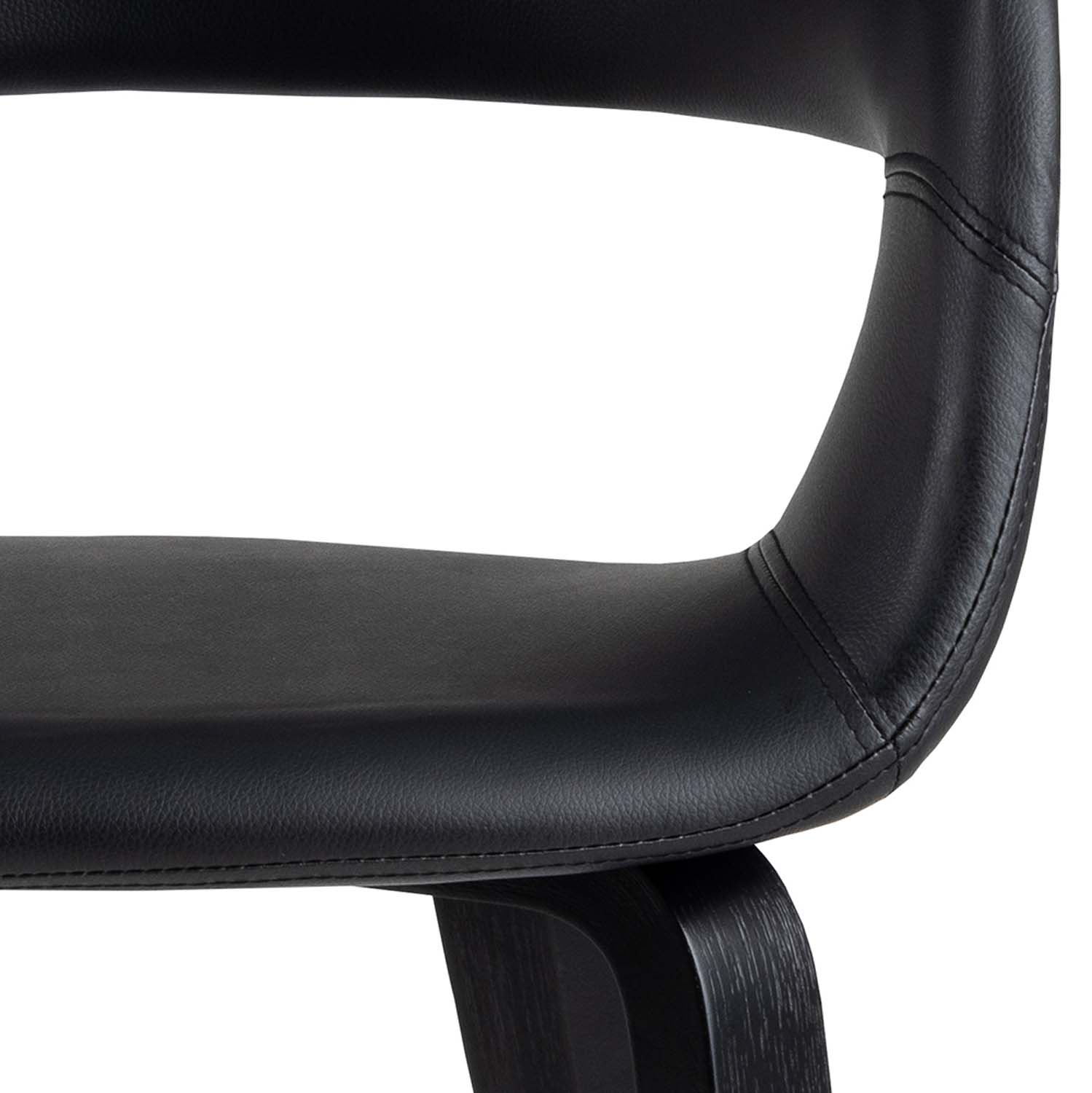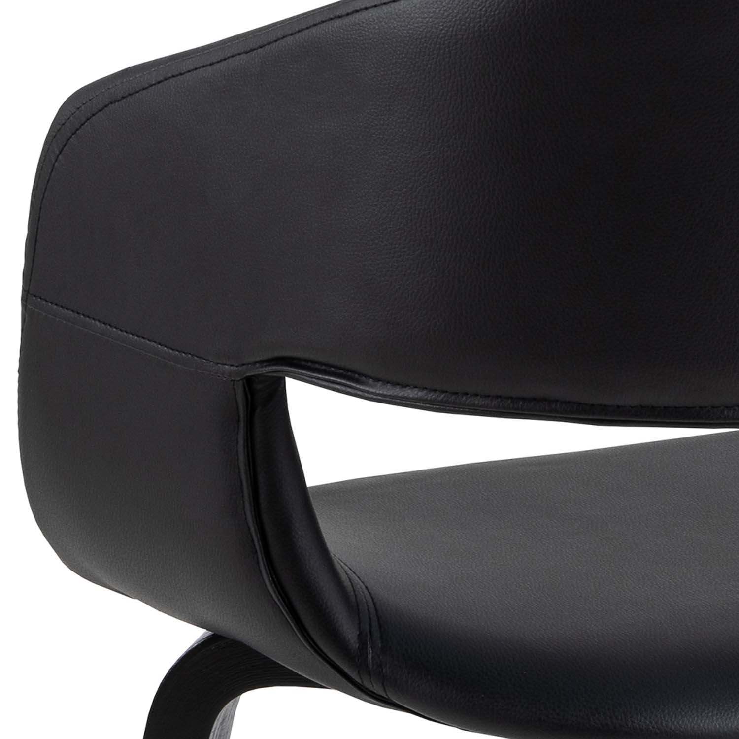 Elegantiška kėdė tinka tiek tradiciniams, tiek moderniems valgomiesiems. Kėdė aptraukta juoda oda. Matmenys 49,5×52,5xH77 cm. PRIEŽIŪRA: nuvalykite paviršių muiluotu skudurėliu arba PU (poliuretano) paviršiaus valikliu ir sausai nušluostykite. Naudokite tik PH neutralumo (7,0) valymo priemones. Nestatykite baldų tiesioginiuose saulės spinduliuose. Pagrindas: Apskritai lakuotiems paviršiams priežiūros reikia nedaug. Visas dėmes reikia nedelsiant pašalinti sausai muiluotame vandenyje išgręžtu skudurėliu.