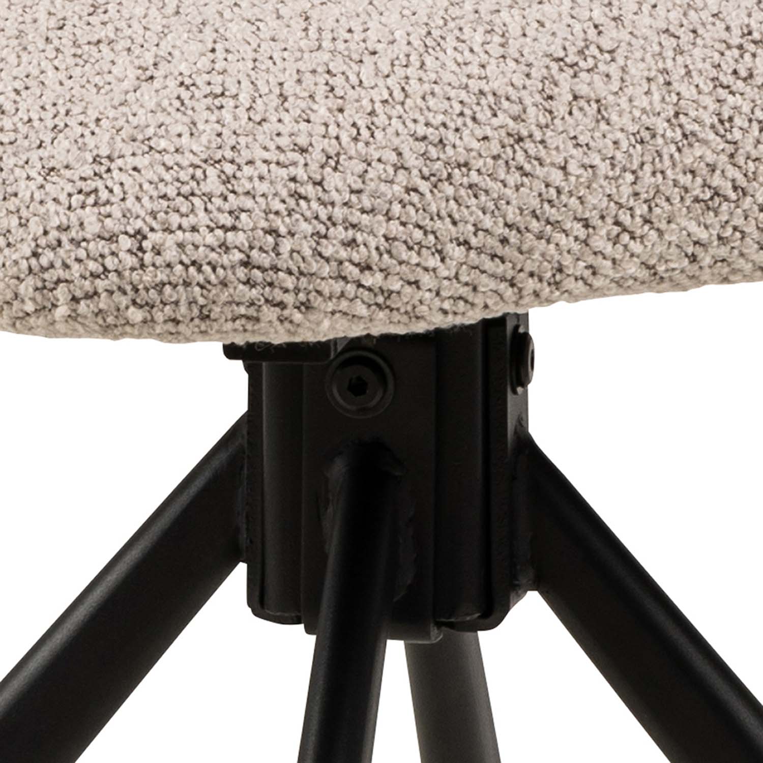 Organiškos formos išlenkta sėdynė yra šiuolaikiška. Minkštas smėlio spalvos sagties audinys. Juodos spalvos metalinis pasukamas pagrindas sukuria kontrastą. FSC™ sertifikatas. Gaminio matmenys 46x58xH80 cm.