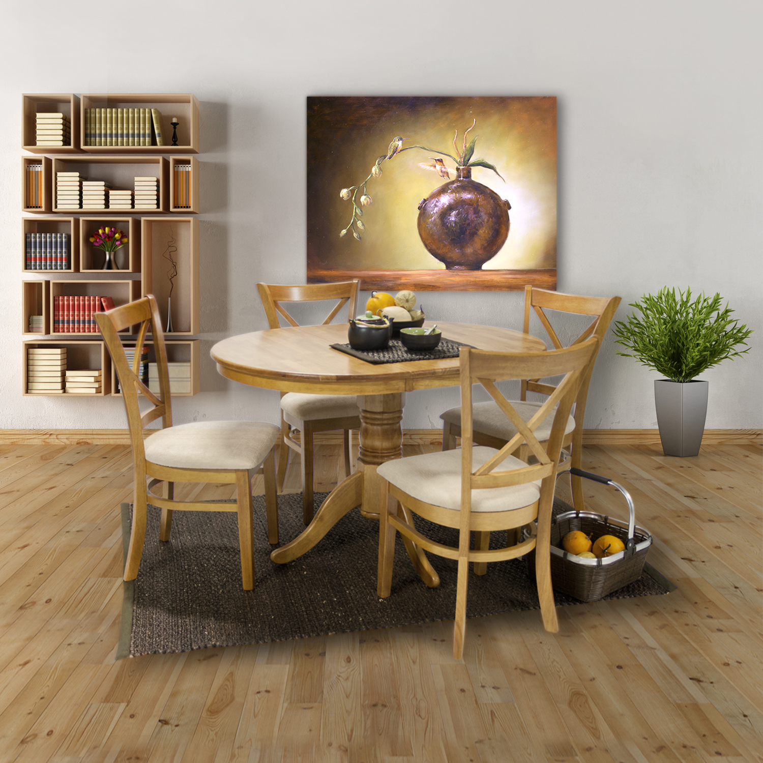 Valgomojo komplektas MIX & MATCH apvalus išskleidžiamas stalas ir 4 kėdės.
