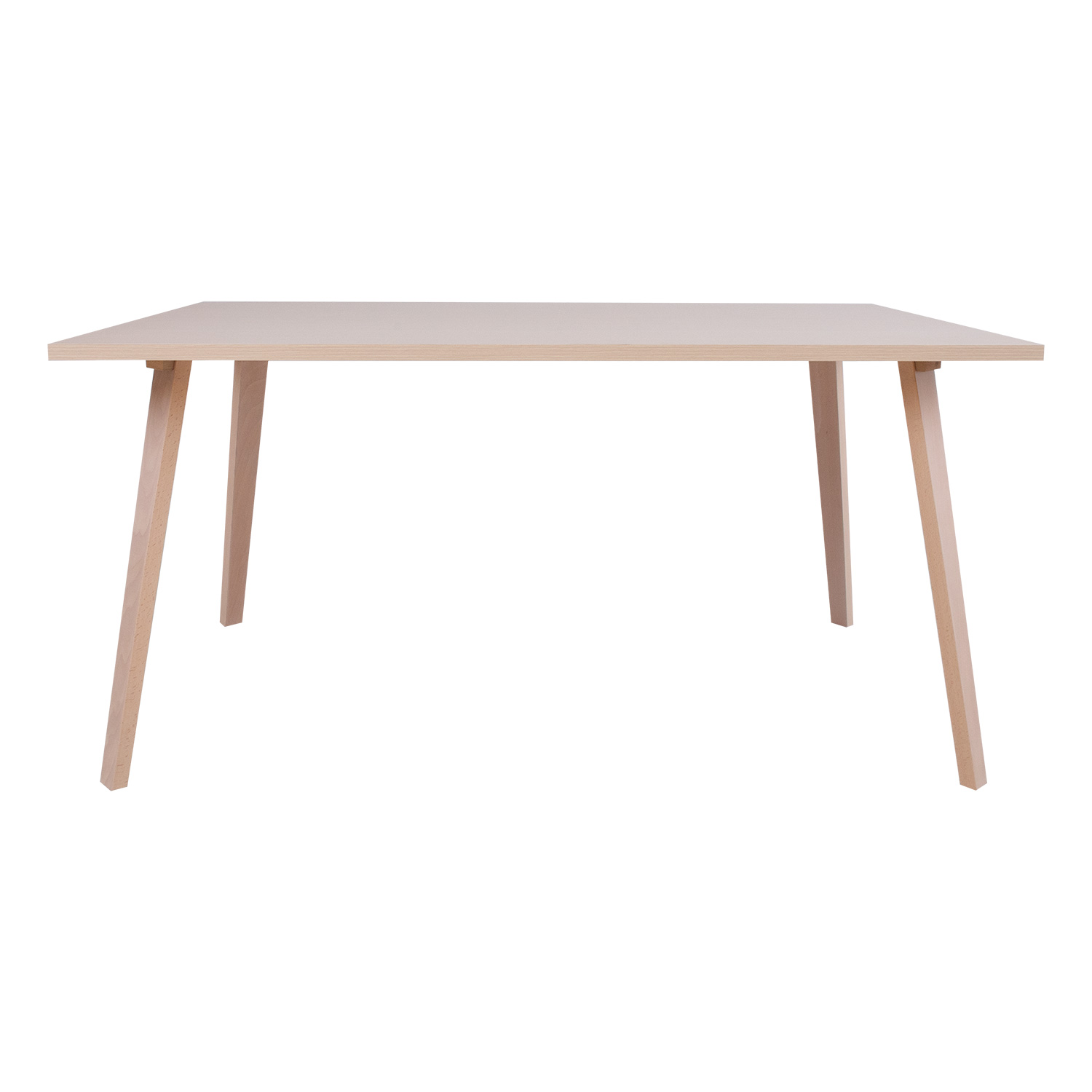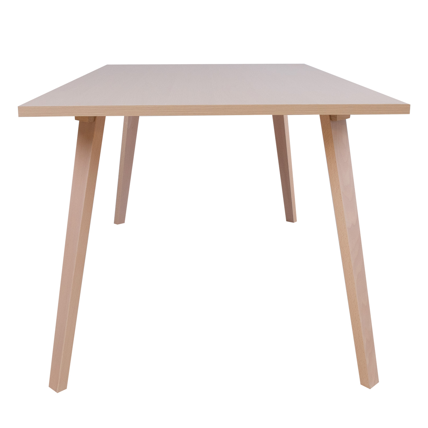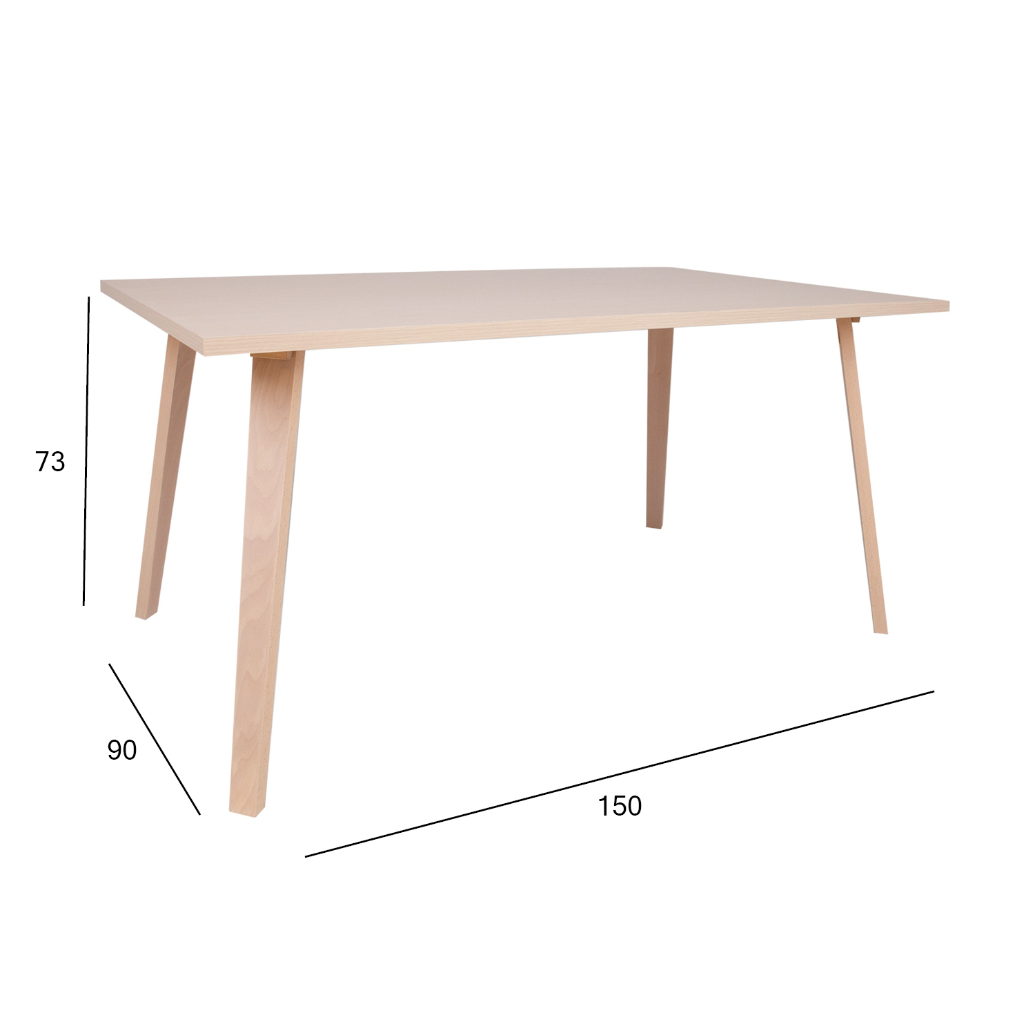Valgomojo stalas ADORA 150x90xH73cm. Stalo stalviršis pagamintas iš korinės plokštės ir padengtas natūralia buko fanera. Storis 25 mm. Kojos ir rėmas pagaminti iš buko masyvo. Stalas padengtas medžio atspalvio baltu laku.