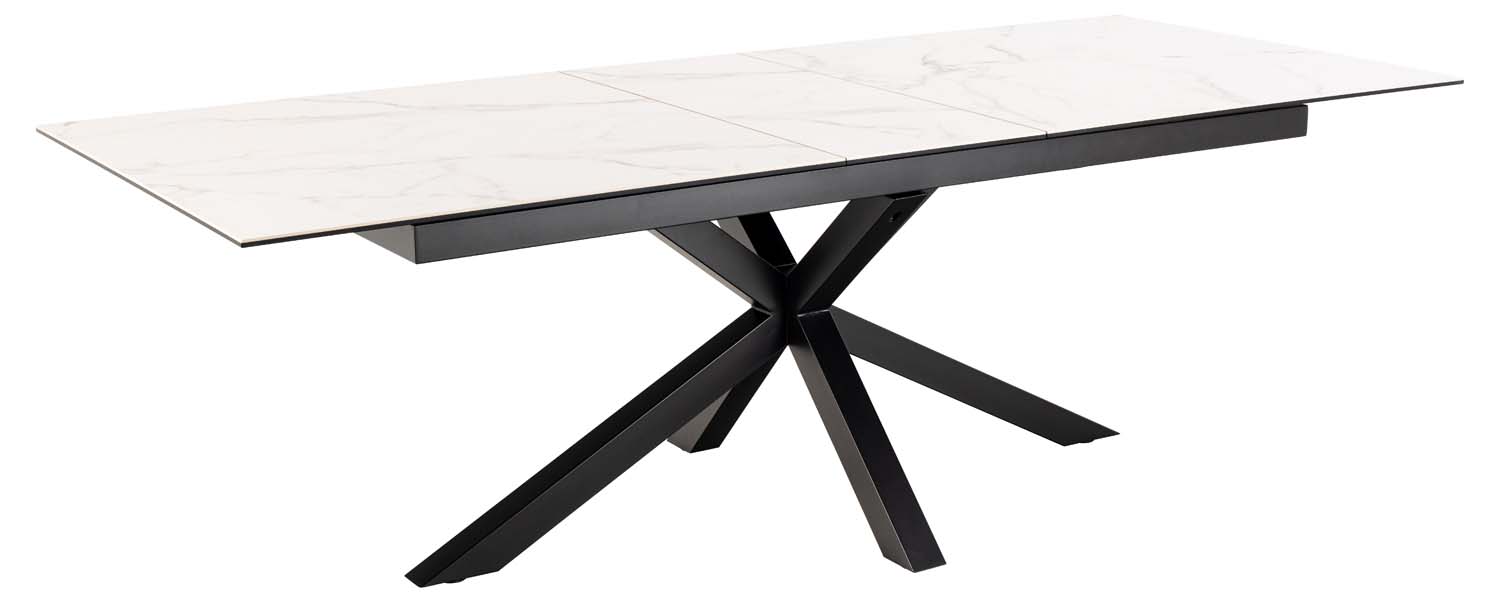 Kalbant apie valgomojo stalus, praktiškumas ir dizainas yra vienodai svarbūs. Šis išskleidžiamas stalas yra ir funkcionalus, ir estetiškas. Kai pramogaujate, paprasčiausiai švelniai patraukite stalo galą, kad viduryje atsirastų prailginimas. Balto marmuro išvaizdos keraminis stalviršis. Skulptūrinis kryžiaus formos pagrindas puikiai dera prie stalo dizaino. Modernus stalas yra atsparus karščiui ir įbrėžimams, todėl nereikalauja daug priežiūros. Matmenys 240x100xH76 cm. Keramika: keramika yra karščiui ir įbrėžimams atspari medžiaga, kuriai reikia minimalios priežiūros. Atsiradus dėmėms, paviršių nuvalykite sausa suspausta pluošto šluoste arba popieriniu rankšluosčiu. Kad nepažeistumėte paviršiaus, naudokite stiklo šluostes. Dugnas: kasdieniam valymui naudokite sausai nuo muilinto vandens nuvalytą šluostę. Paviršių nušluostykite sausai, kad nerūdytų. Netrinkite paviršiaus kietais daiktais.