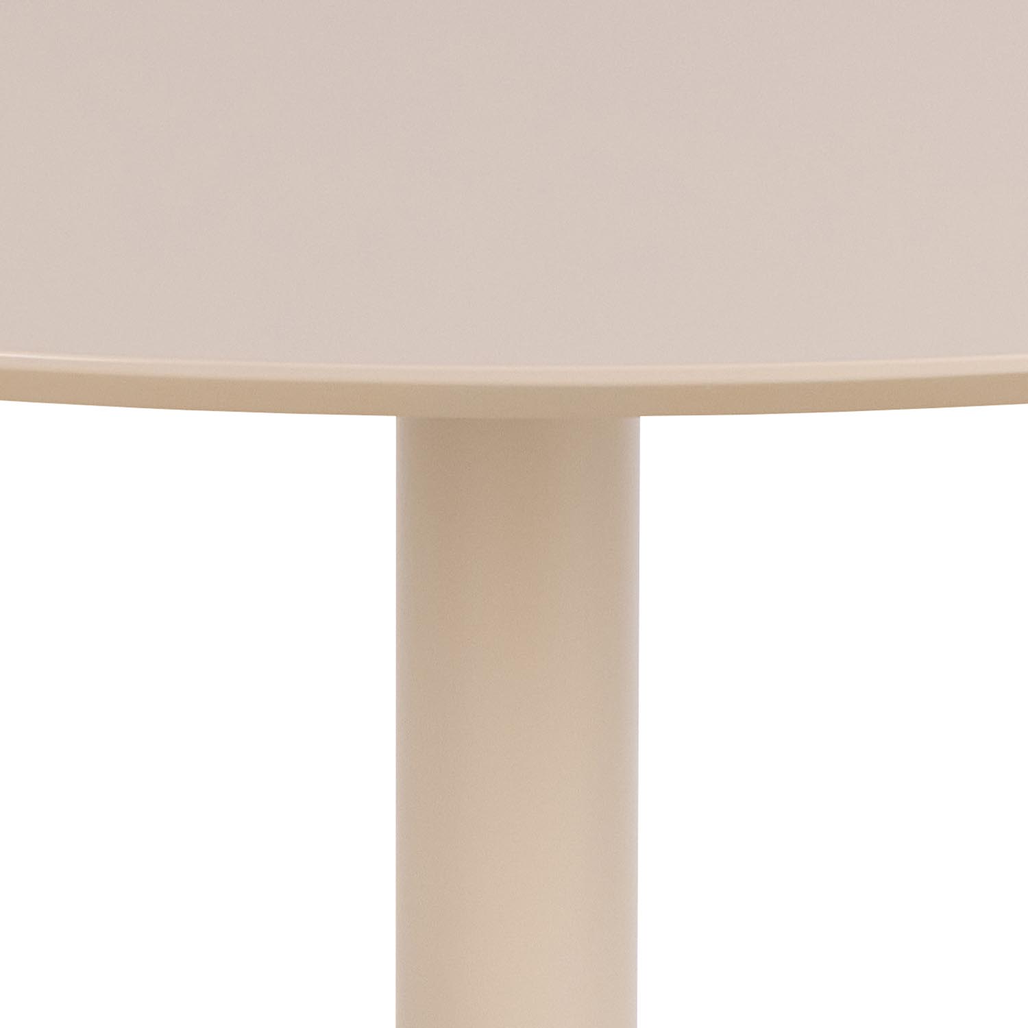 Šis apvalus valgomojo stalas, pasižymintis minimalistiniu dizainu, patogus 4 žmonėms. Dėl savo matmenų jis idealiai tinka mažesnėms valgomojo erdvėms, nes padeda maksimaliai išnaudoti erdvę. Smėlio spalva padidina stalo estetinį patrauklumą, o apvalus trimitinis pagrindas iš plieno papildo stalviršį. Šis gerai subalansuotas stalas tinka bet kokiai progai. Stalo stalviršis pagamintas iš smėlio spalvos dažyto MDF. Trimito pagrindas pagamintas iš matinės smėlio spalvos šiurkštaus milteliniu būdu dažyto plieno. Stalo matmenys: D110xH74 cm.