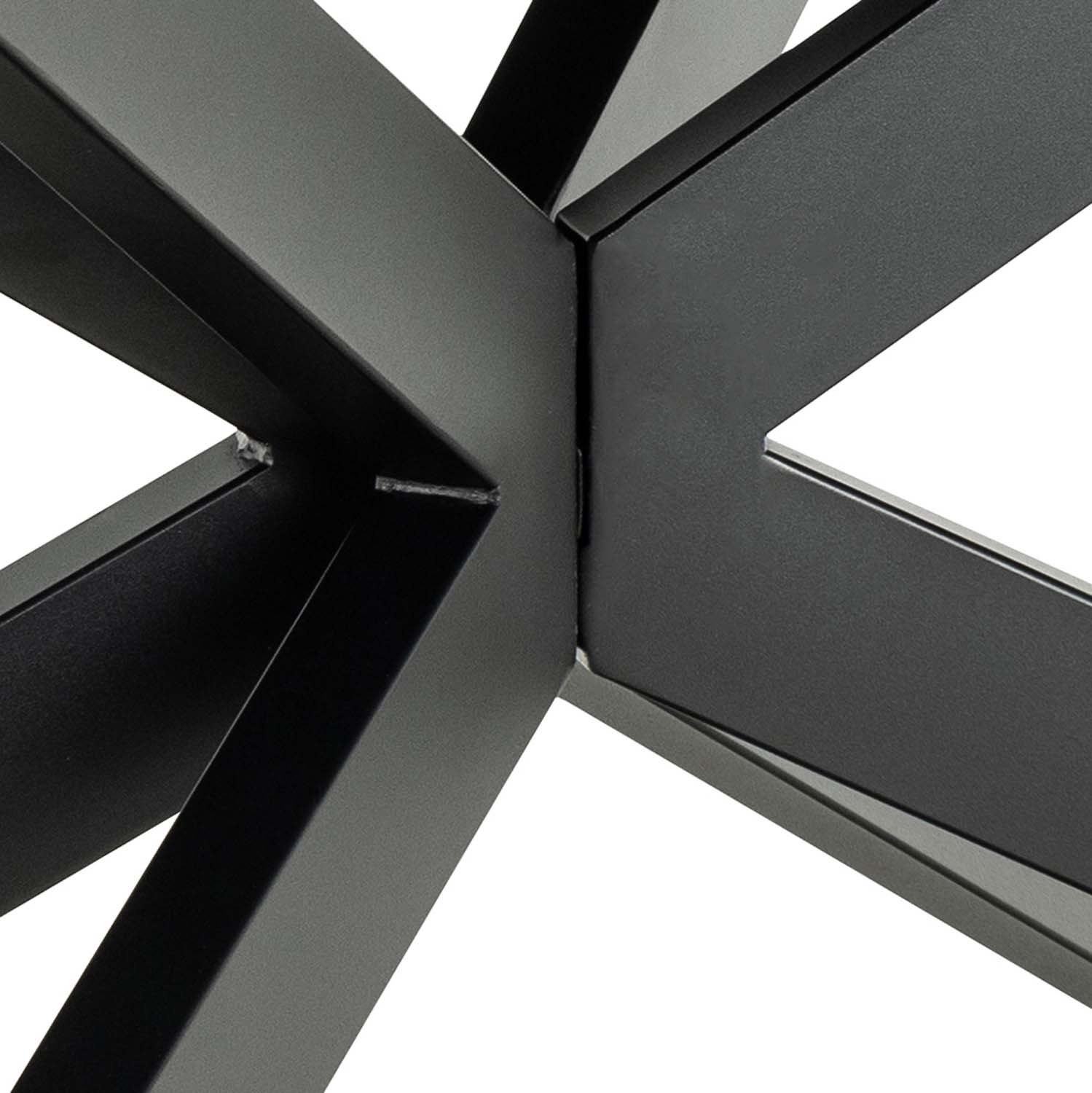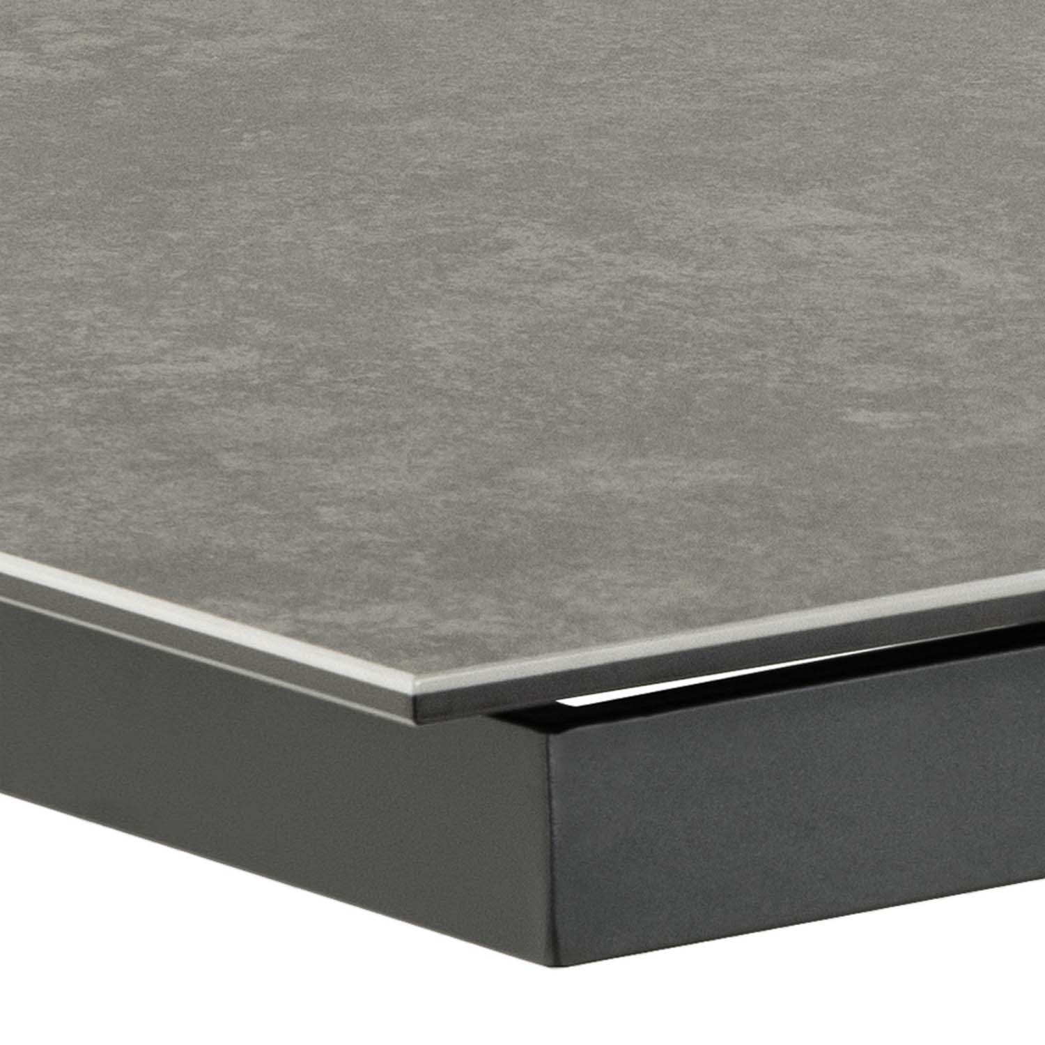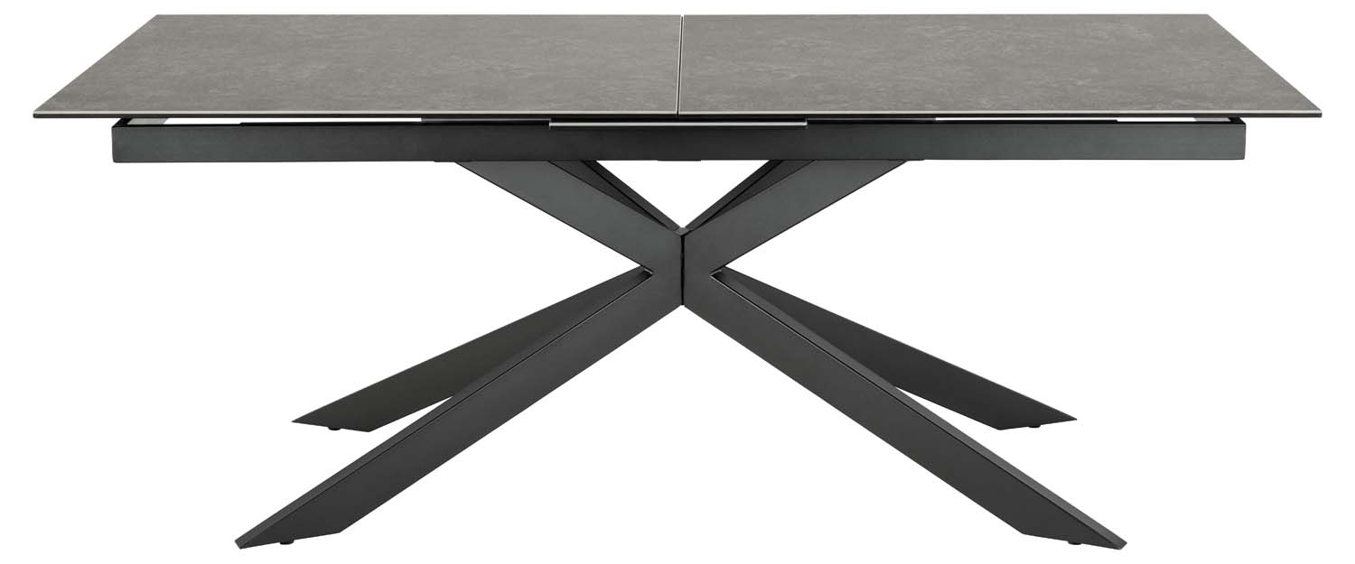 Juodos keramikos stalviršis suteikia stalui pramoninę išvaizdą. Paviršius atsparus karščiui ir įbrėžimams, todėl nereikalauja daug priežiūros. Dėl sinchroninio prailginimo stalą galima lengvai prailginti. Tiesiog švelniai patraukite stalo galą ir viduryje atsiras prailginimo plokštė. Juodais milteliais dengtas skersinis. Išplėstas patogiai talpina 10 žmonių. Gaminio matmenys 200/240x100xH76 cm.