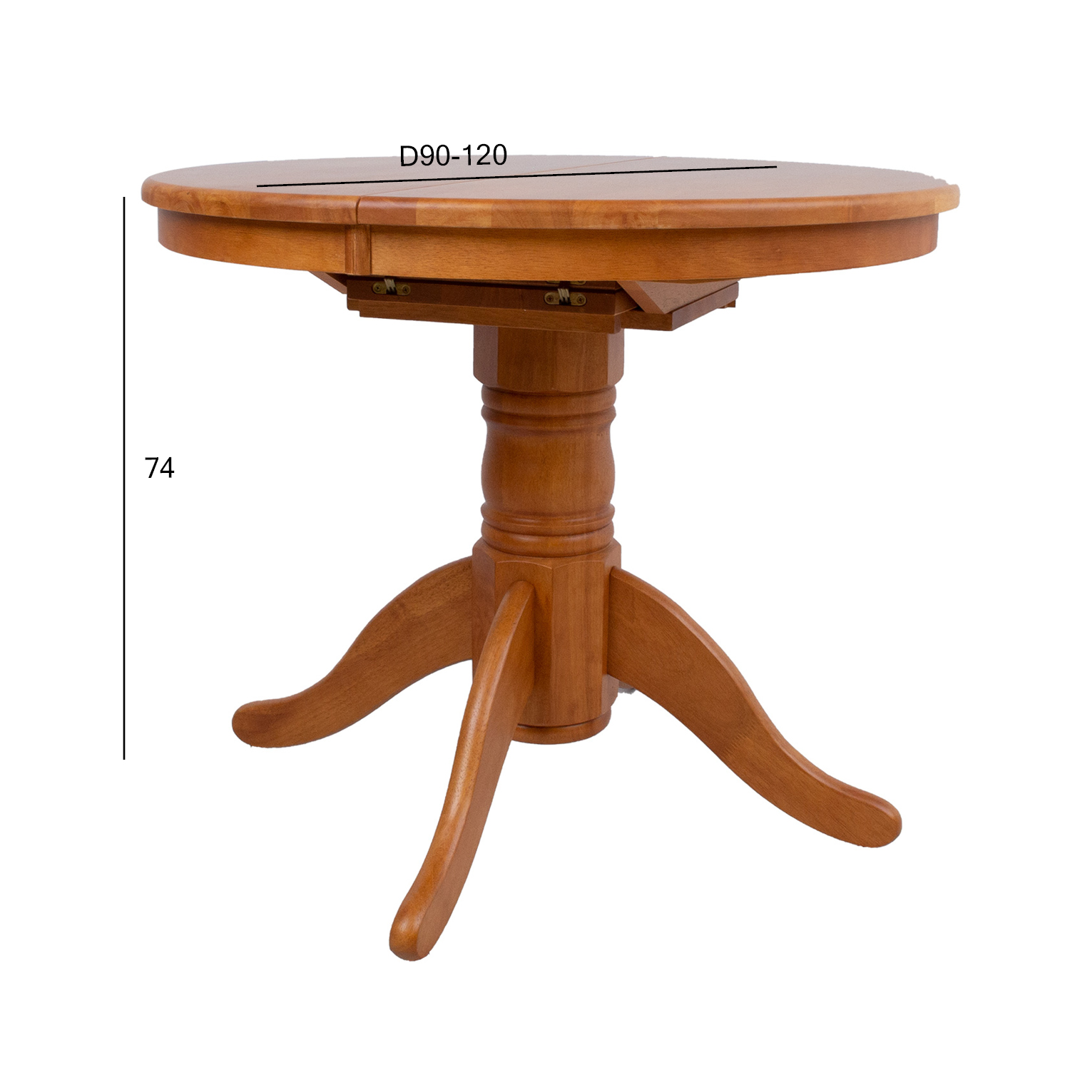 Išplečiamas valgomojo stalas MIX & MATCH D90/120xH74cm. Stalas pagamintas iš kaučiukmedžio ir padengtas šviesaus ąžuolo laku. Stalas yra išskleidžiamas. Stalo stalviršis atsidaro per vidurį, o prailginimas dedamas tarp dviejų šonų. Po stalo stalviršiu dedama 30 cm pločio tarpinė.