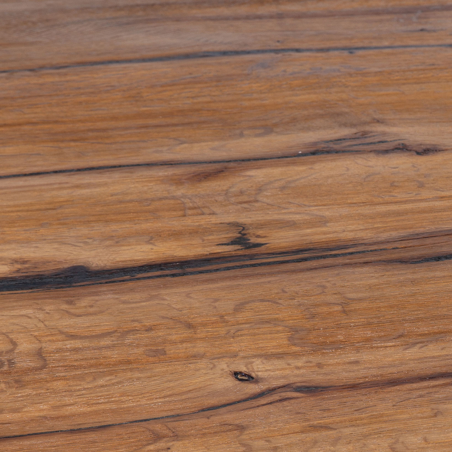 Valgomojo stalas ROTTERDAM 220x100xH75cm. Stalas pagamintas iš baldinės plokštės, stalviršis dengtas natūralia kaimiško ąžuolo fanera. Rustic fanera yra įvairios ir gyvos tekstūros. Leidžiami dideli mazgai, tinkuoti tarpai ir didelė atspalvių įvairovė. Stalo kojos turi medžio masyvo profilius. Stalo stalviršį sudaro dvi plokštės. Stalo stalviršis apdailintas aliejumi. Stalo kojos pagamintos iš metalo ir padengtos juoda milteline danga. Viename arba abiejuose stalo galuose galima įsigyti 50 cm ilgio prailginimą (kodas 18114), kuriuo galima sukurti iki 3+3 papildomų sėdimų vietų. Pratęsimo plokštės į komplektą neįeina. PRIEŽIŪRA: saugokite faneruotą paviršių nuo skysčių. Bet kokį ant stalo išsiliejusį skystį reikia nedelsiant nuvalyti minkšta, švelniai drėgna šluoste. Visada naudokite stalo kilimėlius ir karštus padėkliukus.
