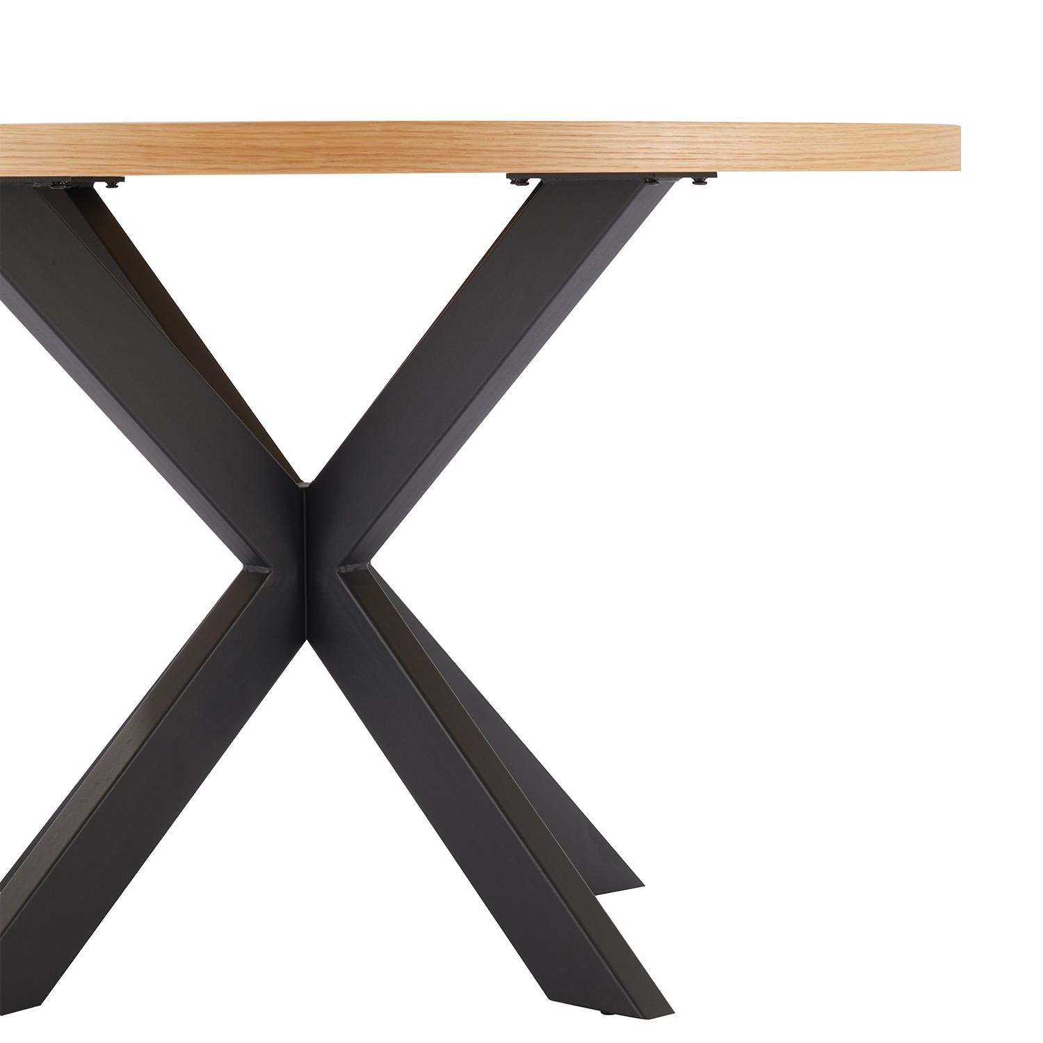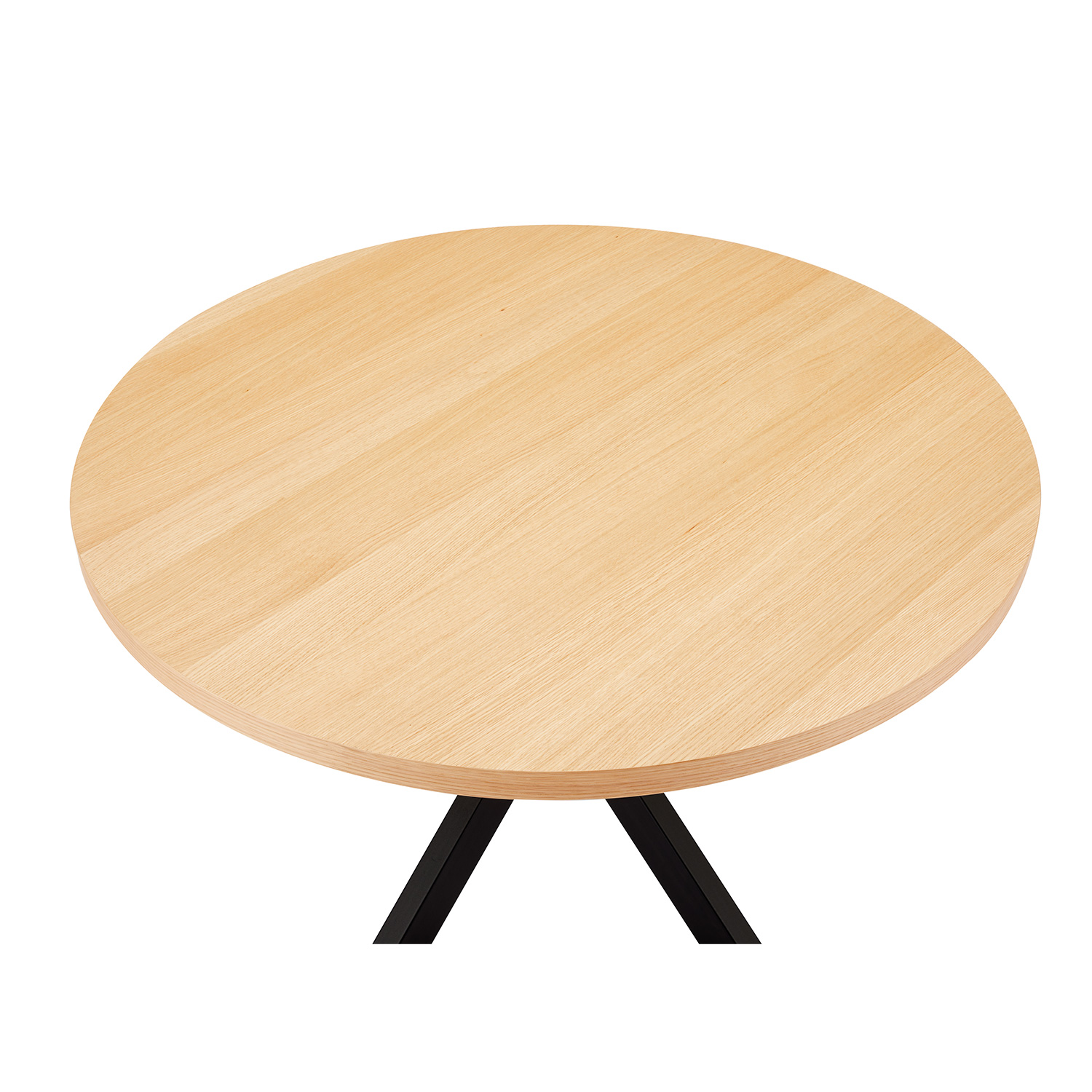 Valgomojo stalas VANCOUVER D120xH75cm, ąžuolas. MDF stalviršis dengtas natūralia ąžuolo fanera. Metalinės kojos padengtos juodos spalvos milteliniu būdu. PRIEŽIŪRA: stalo stalviršis su natūraliu lukštu yra labai jautrus drėgmės pažeidimams ir temperatūrai. Stalas labai jautrus drėgmei ir įbrėžimams. Po stalu visada naudokite kilimėlius ir karštus padėkliukus. Bet kokį ant stalo išsiliejusį skystį reikia nedelsiant nuvalyti minkštu skudurėliu. Venkite pernelyg didelio šveitimo ir abrazyvinių valymo priemonių.