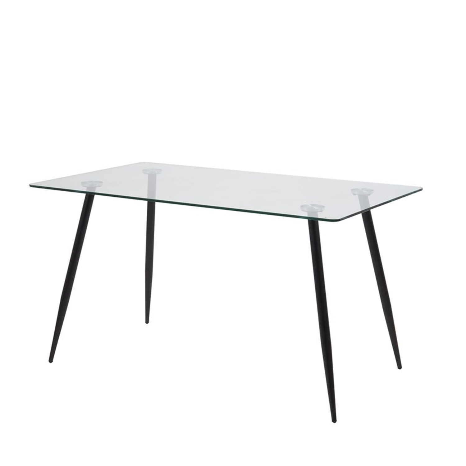 Valgomojo stalas yra vizualiai patrauklus ir patvarus. Nesenstantis dizainas pagamintas iš metalo ir stiklo. Pasirinktos medžiagos užtikrina minimalią priežiūrą, o stalą lengva valyti. Stalas turi dailias kampuotas kojas. Stalo stalviršis: 10 mm stiklas, kojos: juodas metalas. Matmenys 140x80xH75 cm.