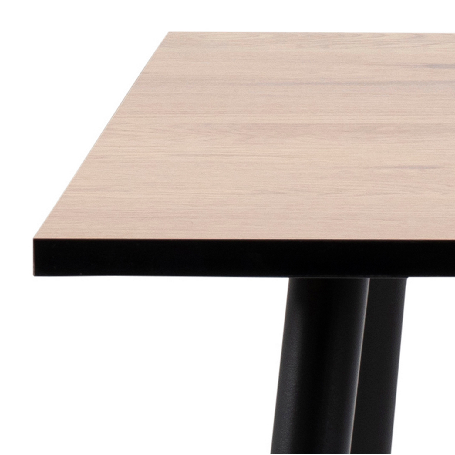 Iš metalo ir melamino pagamintas valgomojo stalas yra vizualiai patrauklus ir patvarus. Stalas turi plonas, kampuotas kojas. Pasirinktos medžiagos užtikrina minimalią priežiūrą. Stalo stalviršis: ąžuolinis melaminas, pagrindas: matinis juodas milteliniu būdu dengtas plienas. Matmenys 80x80xH75 cm.